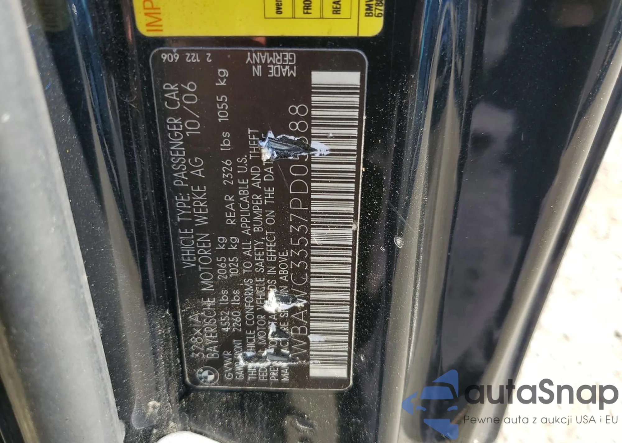2007 BMW 328 Xi from USA, damaged, VIN WBAWC33537PD05388