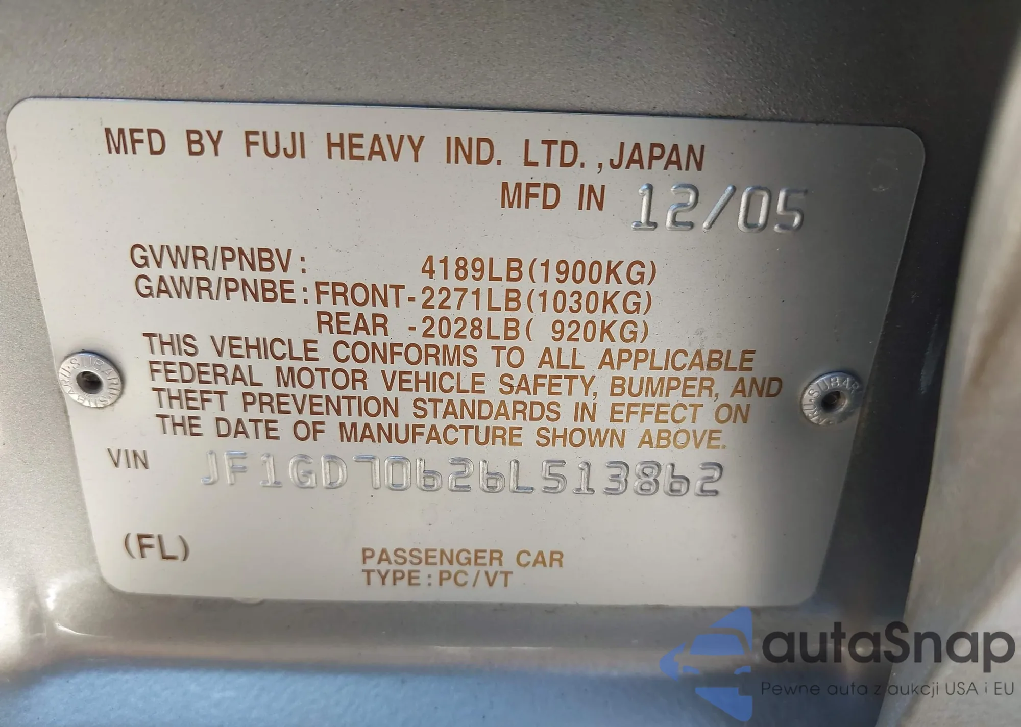 • VIN JF1GD70626L513862