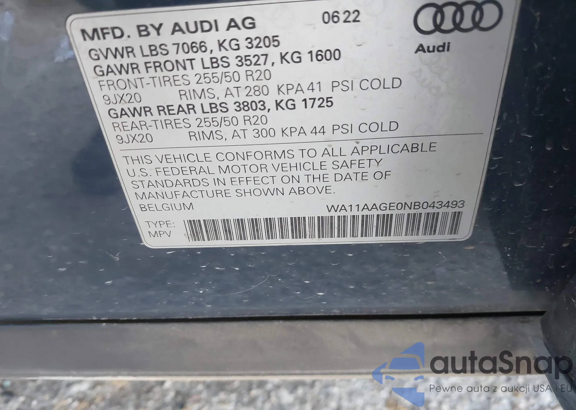 LOT: 42745861 VIN: WAUH3AFC2JN072191