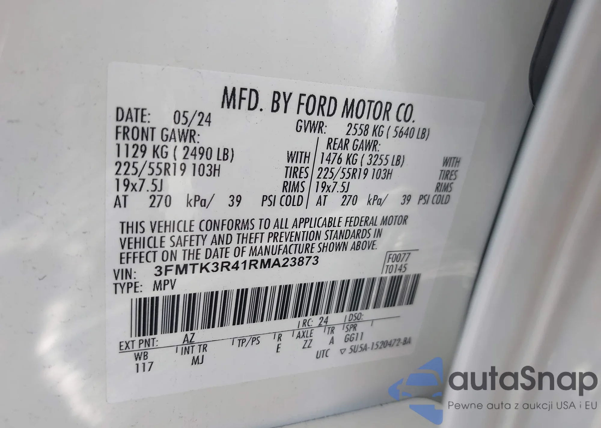 LOT: 43052024 VIN: 3FMTK3R41RMA23873