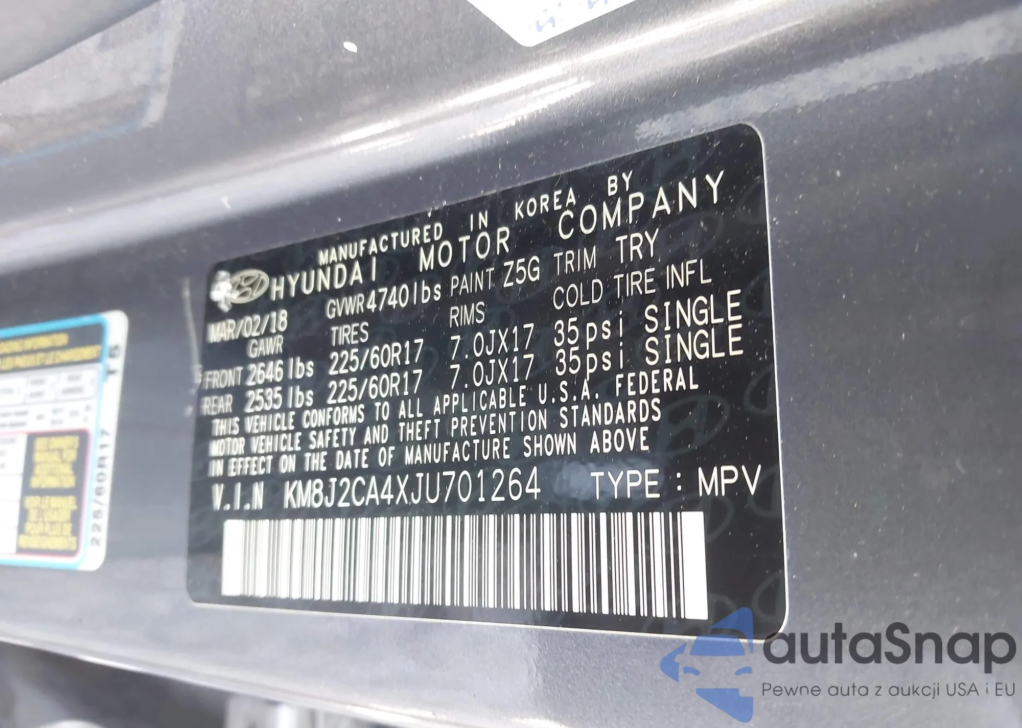 • VIN KM8J2CA4XJU701264