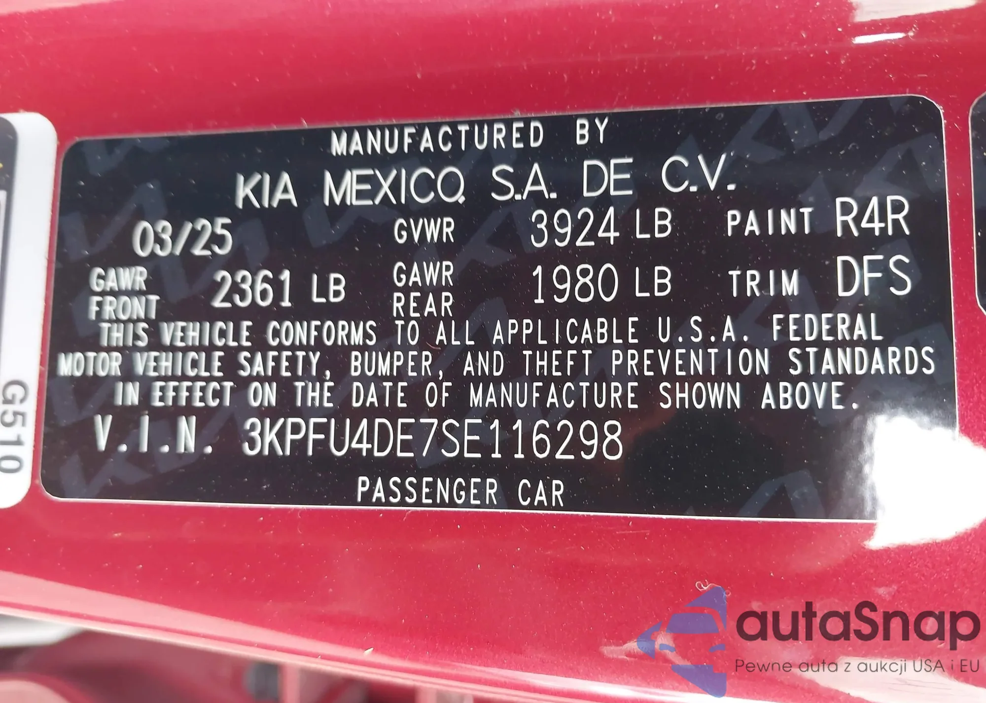 • VIN 3KPFU4DE7SE116298
