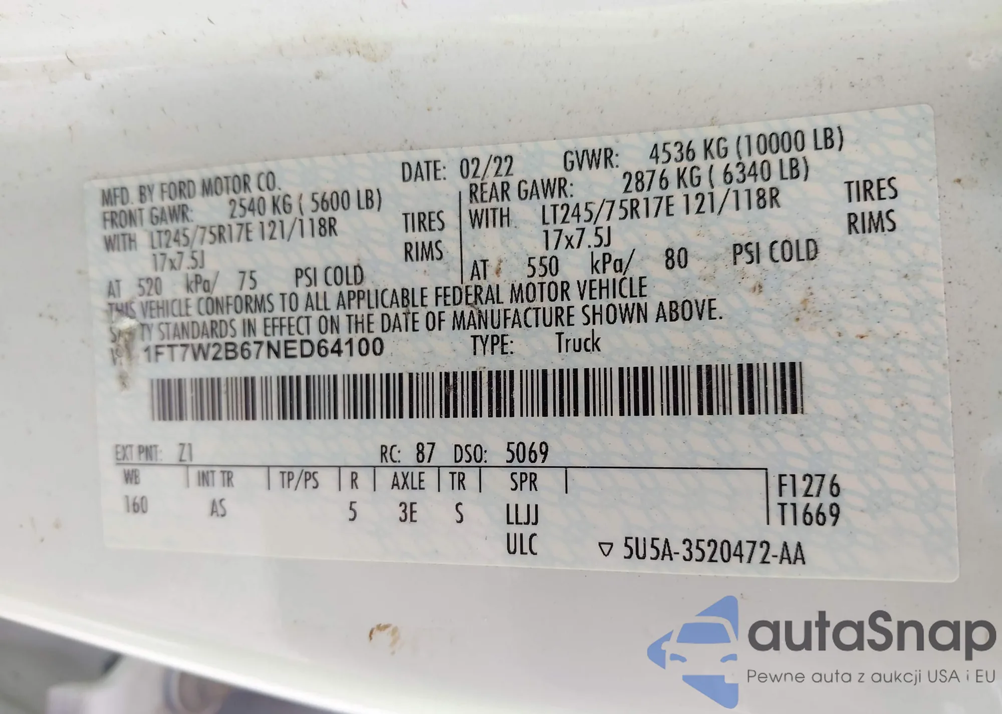 • VIN 1FT7W2B67NED64100