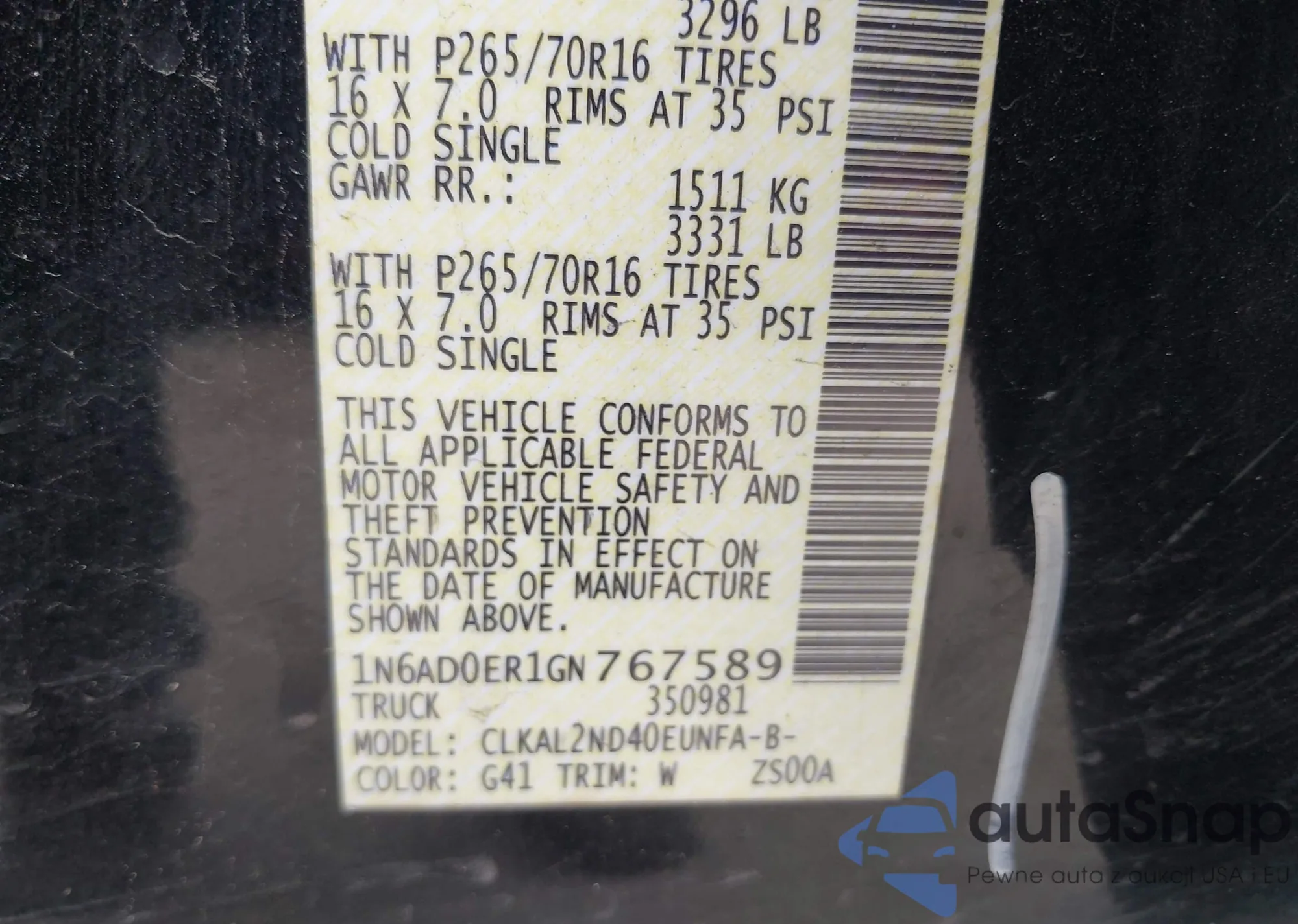 • VIN 1N6AD0ER1GN767589