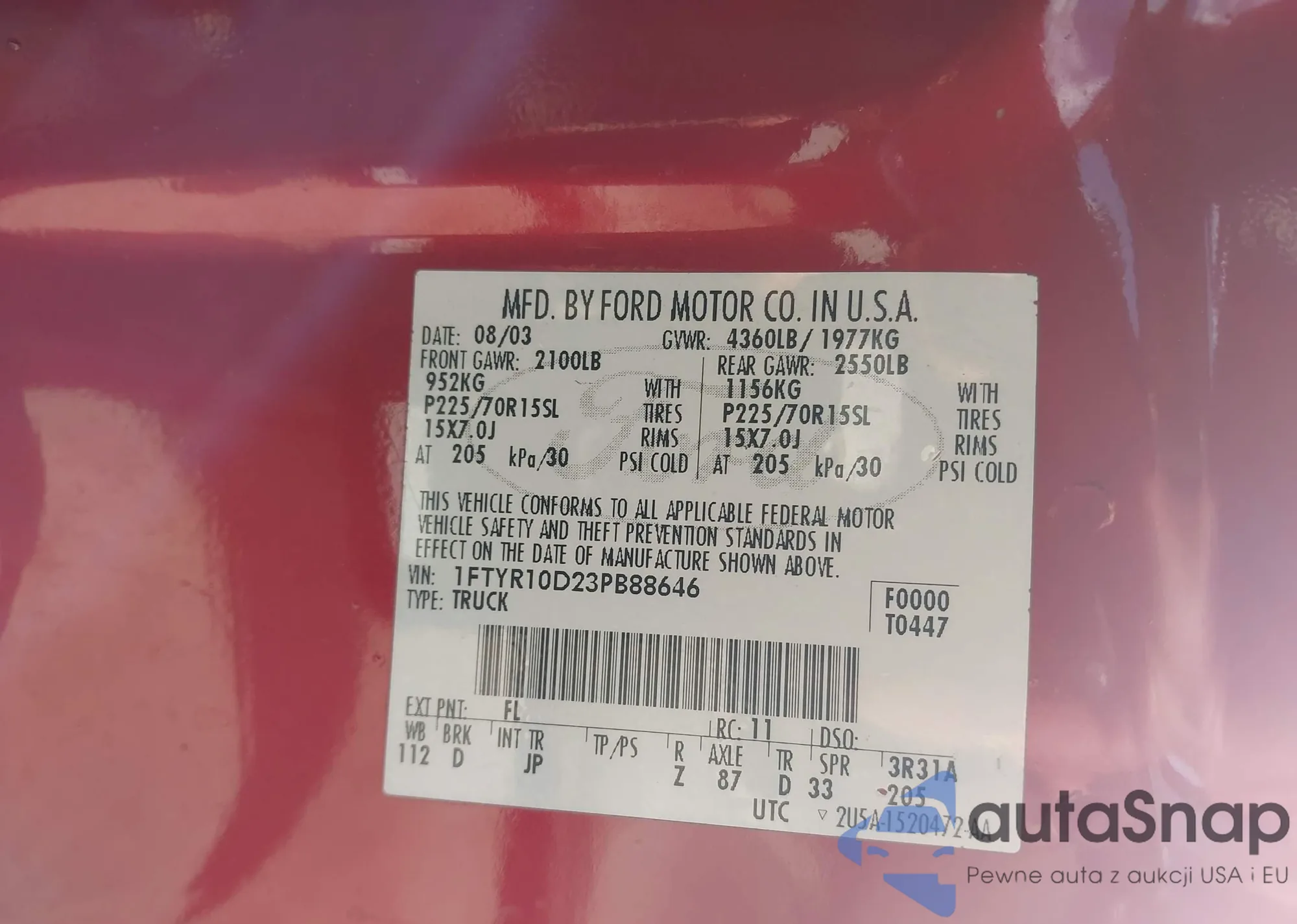 • VIN 1FTYR10D23PB88646