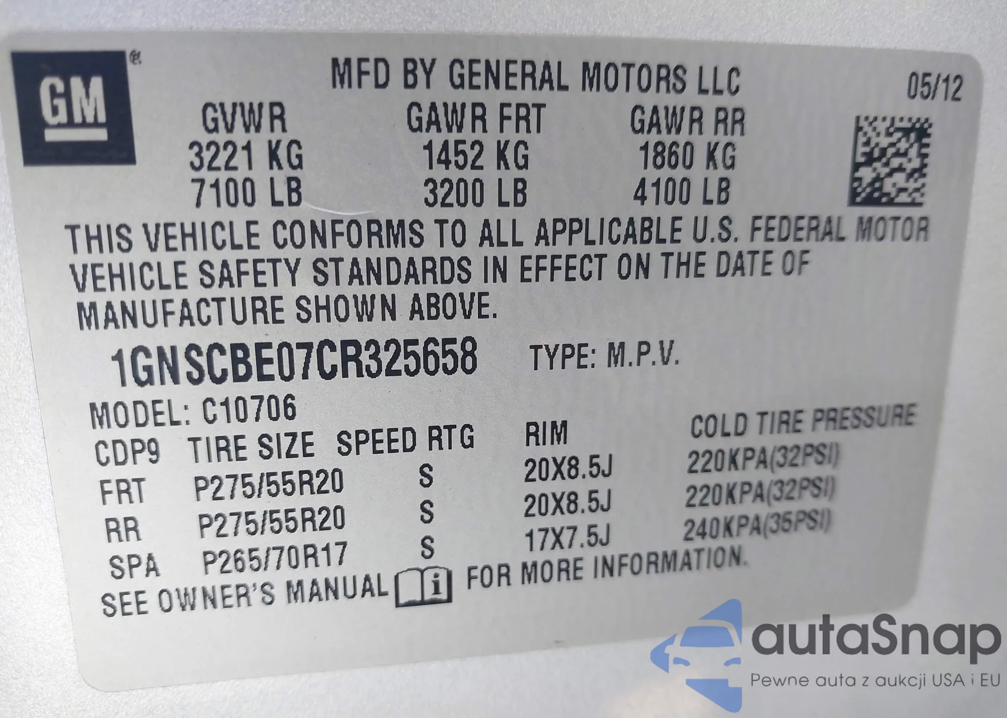 • VIN 1GNSCBE07CR325658