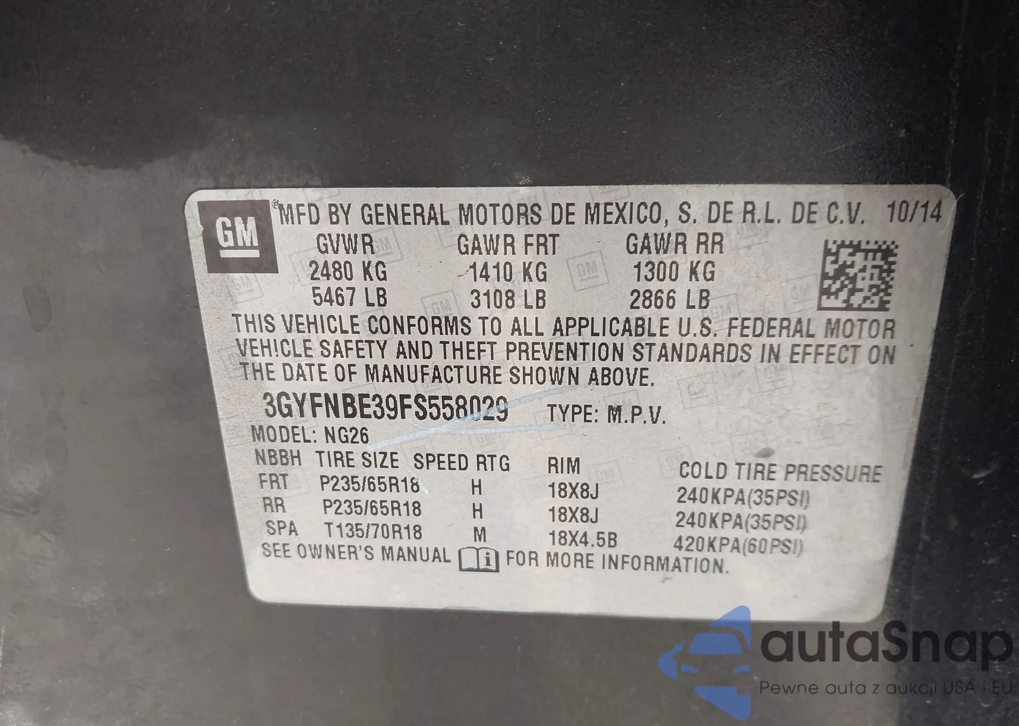 LOT: 43314083 VIN: 3GYFNBE39FS558029