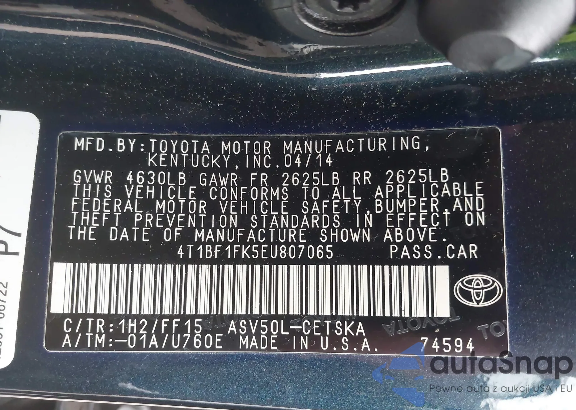 • VIN 4T1BF1FK5EU807065