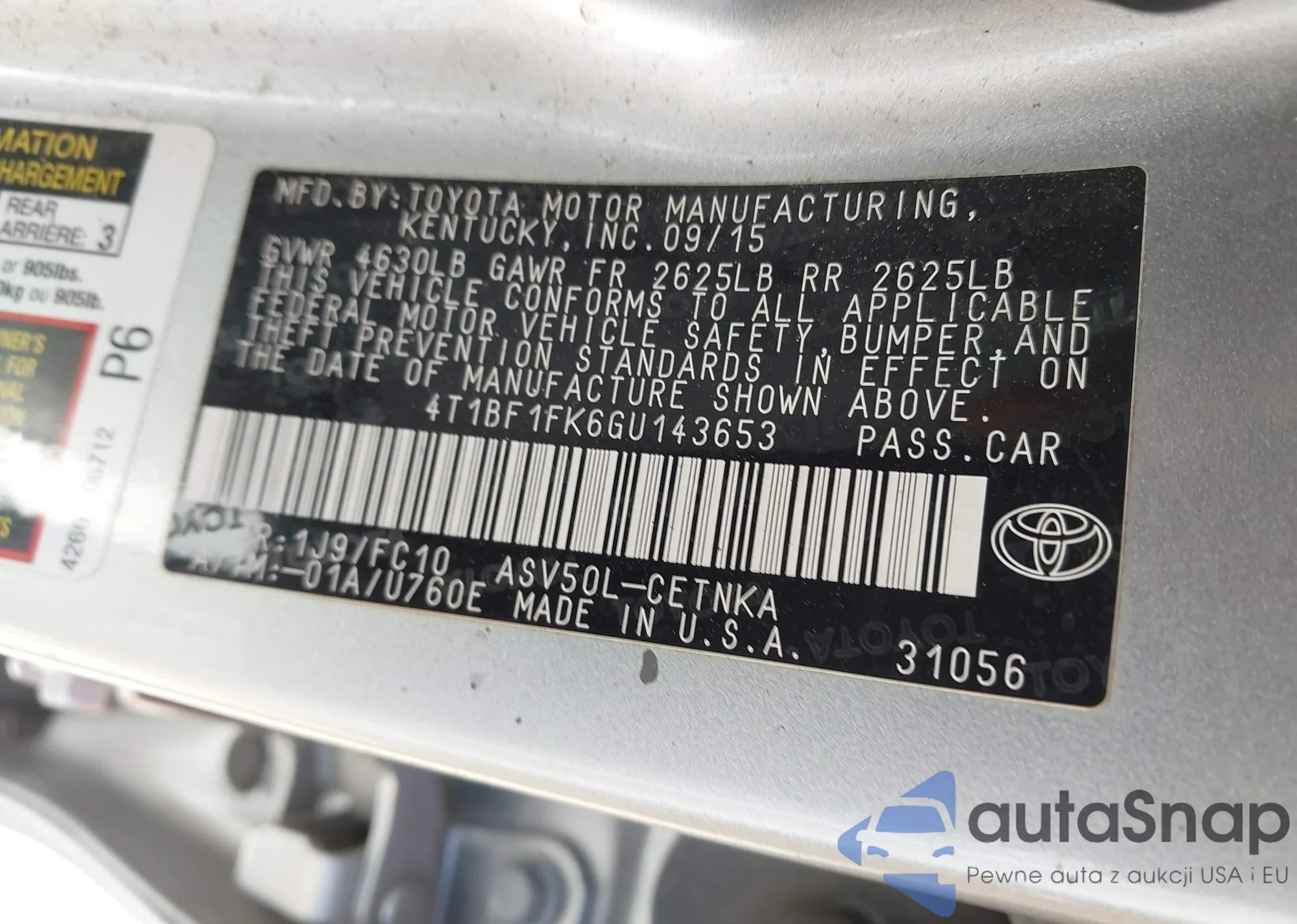 • VIN 4T1BF1FK6GU143653