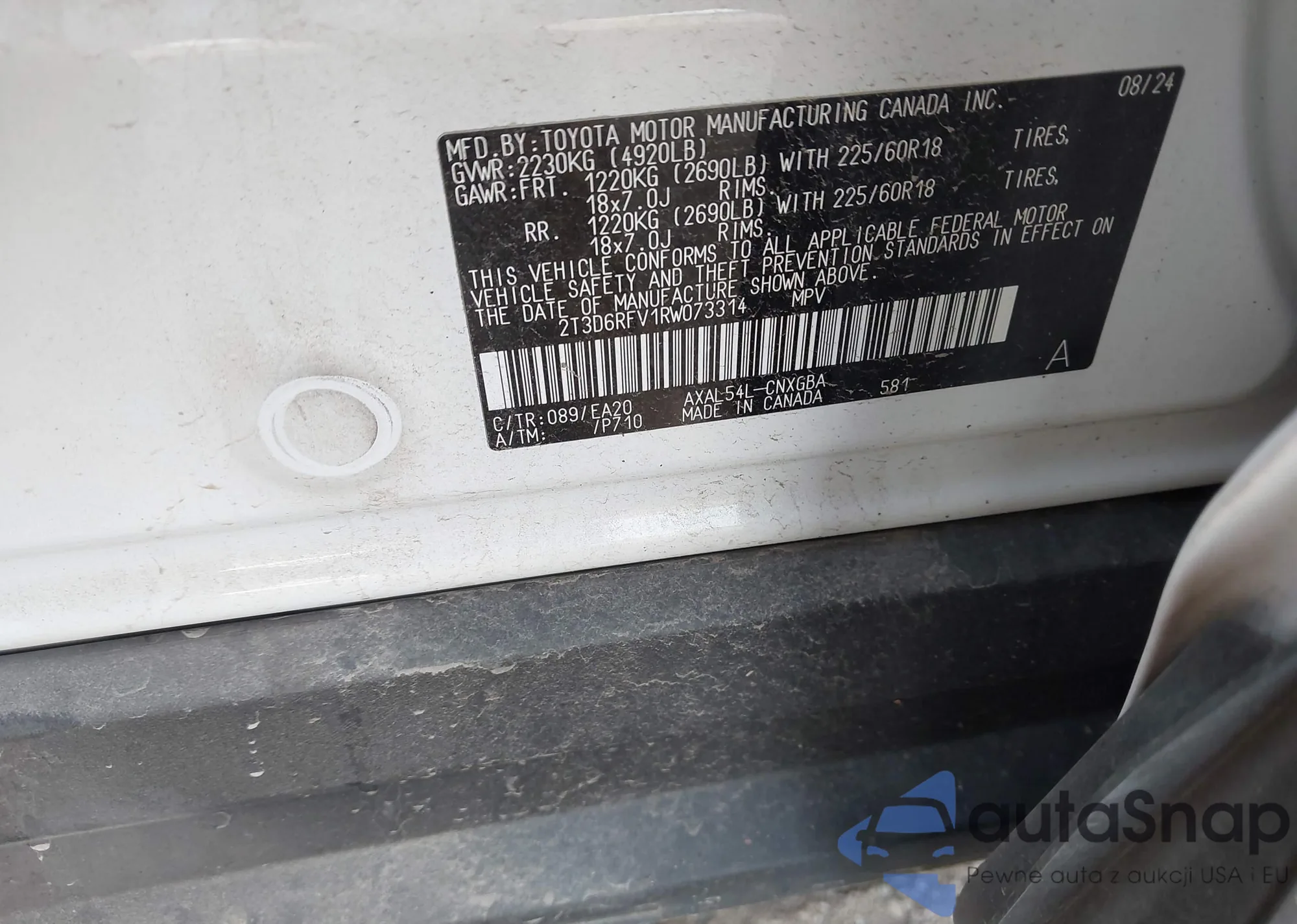 • VIN 2T3D6RFV1RW073314