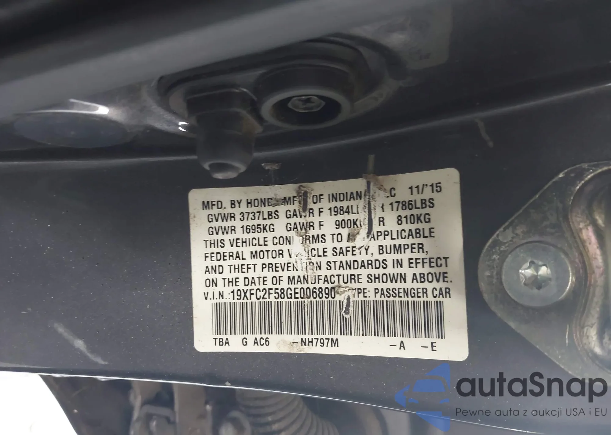 • VIN 19XFC2F58GE006890