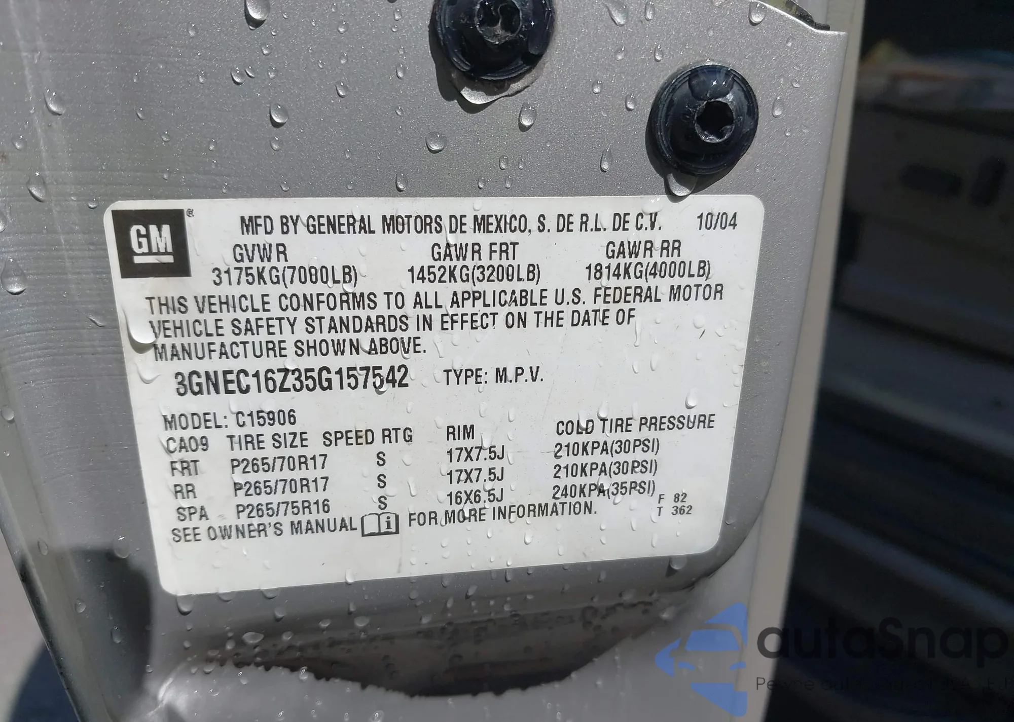• VIN 3GNEC16Z35G157542