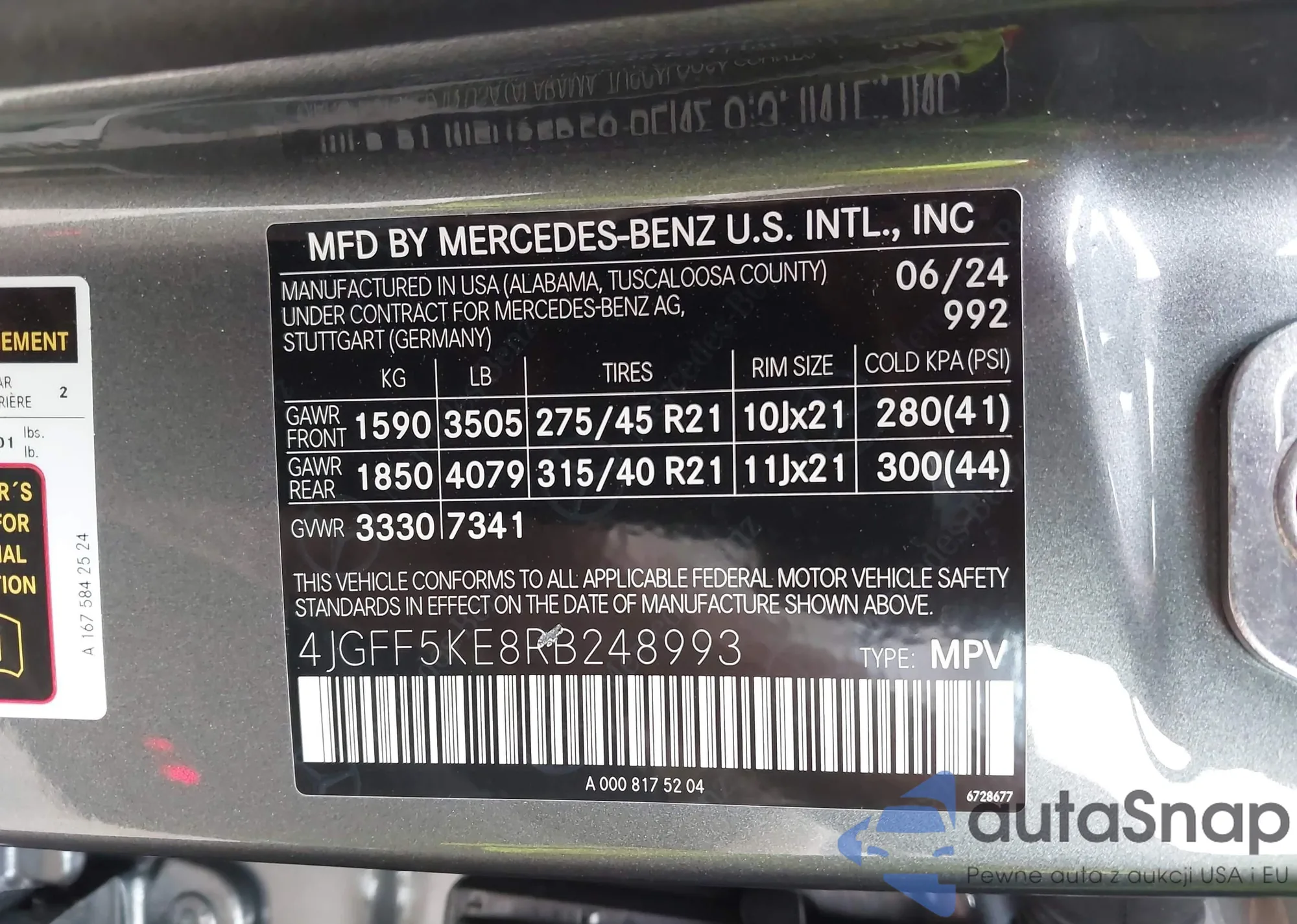 LOT: 43340154 VIN: 4JGFF5KE8RB248993