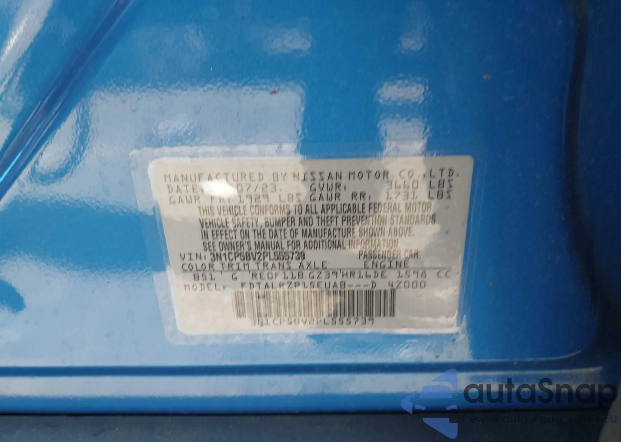 • VIN 1VWBS7A30EC120825