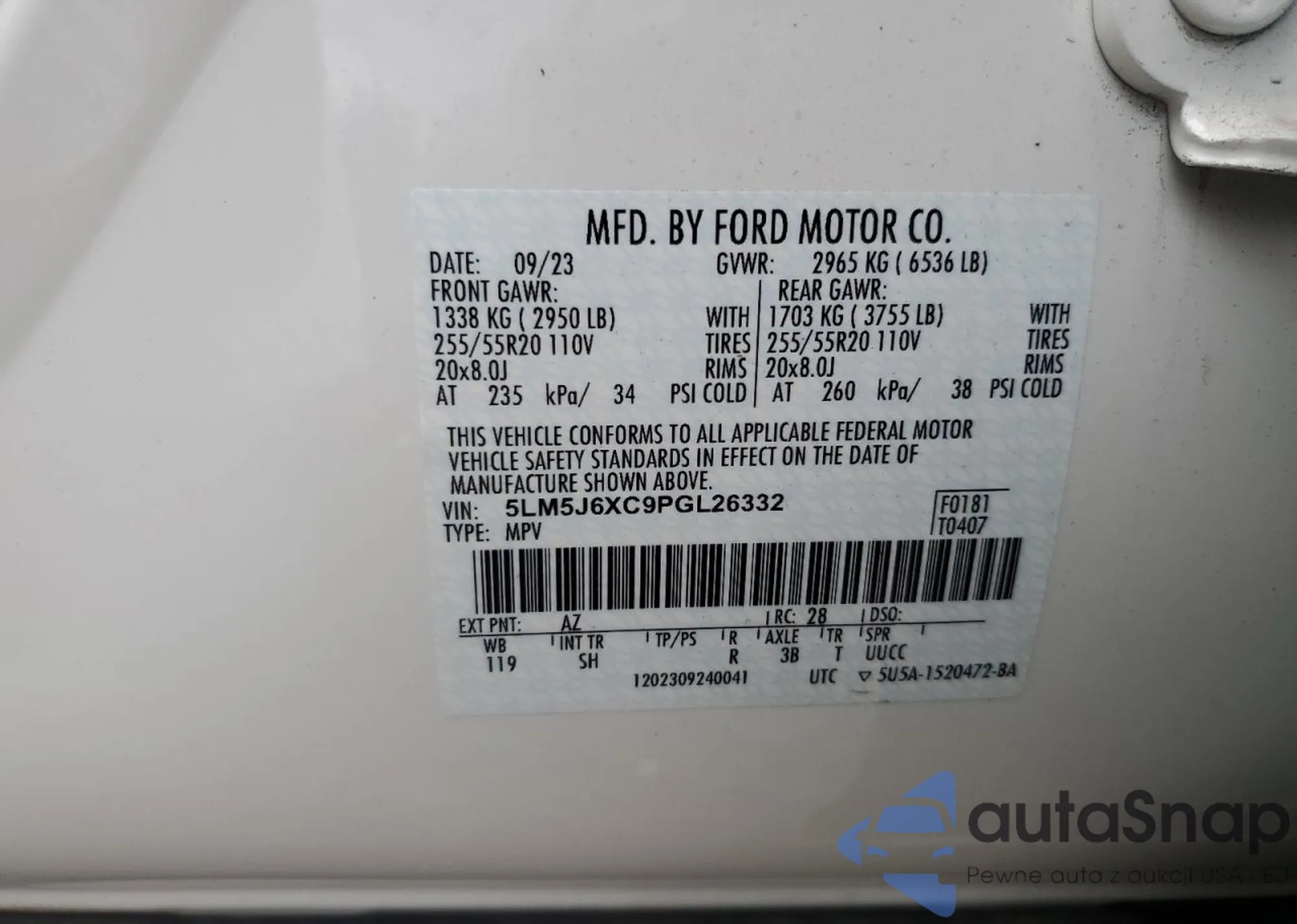 • VIN 5LM5J6XC9PGL26332
