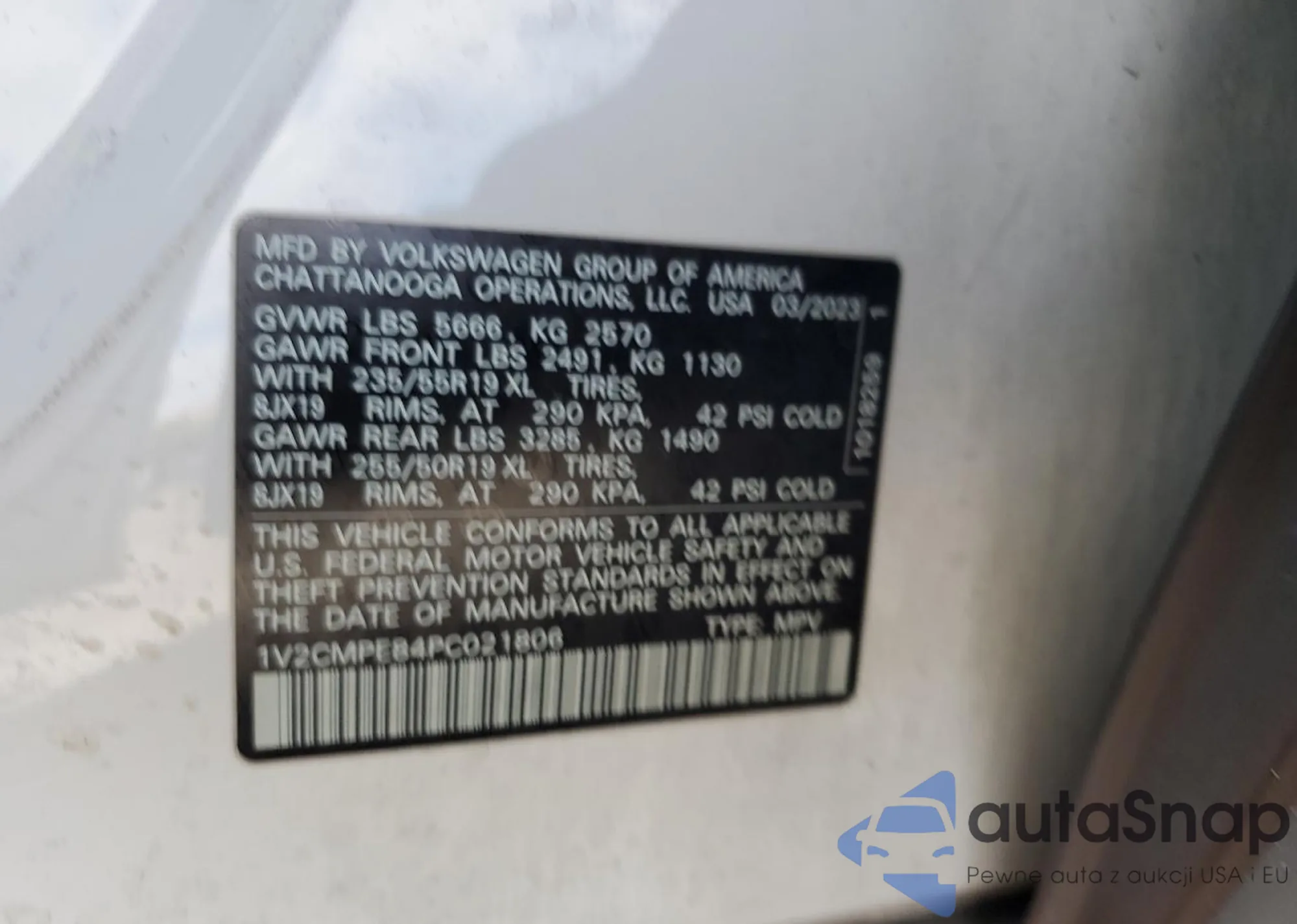 LOT: 66328045 VIN: 1V2CMPE84PC021806