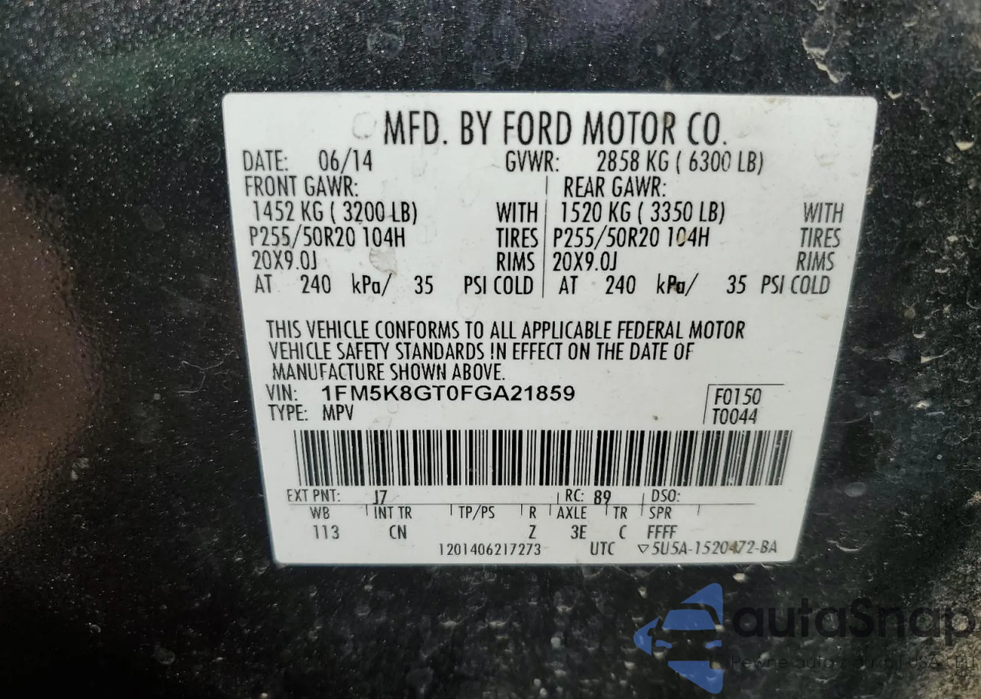 • VIN 1FM5K8GT0FGA21859