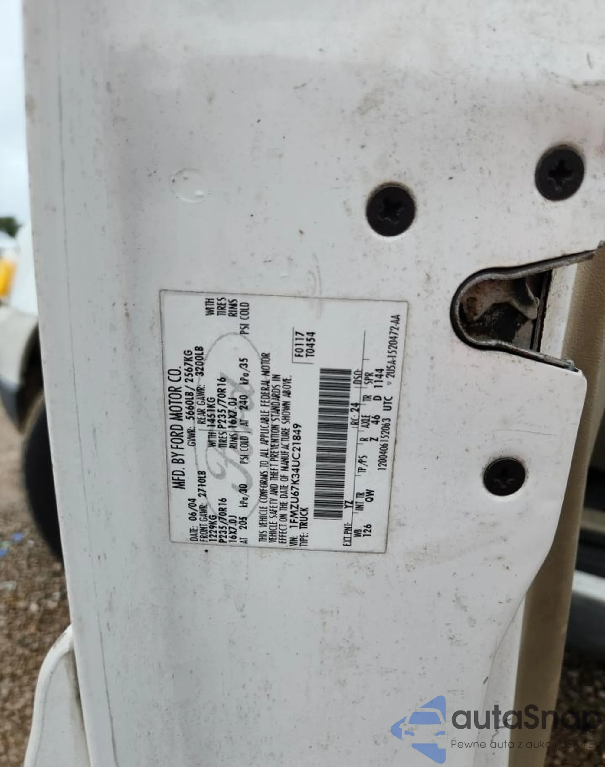 • VIN 1FMZU67K34UC21849