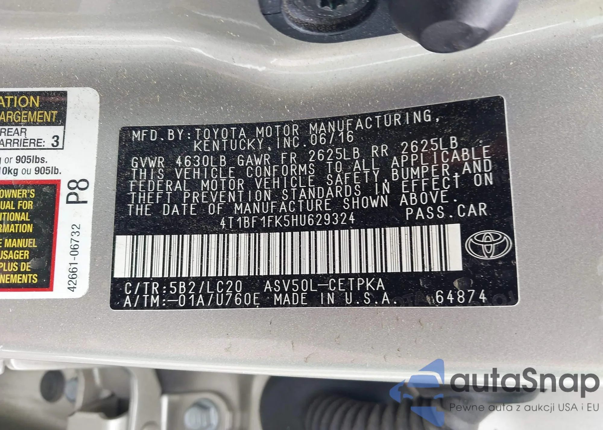 • VIN 4T1BF1FK5HU629324