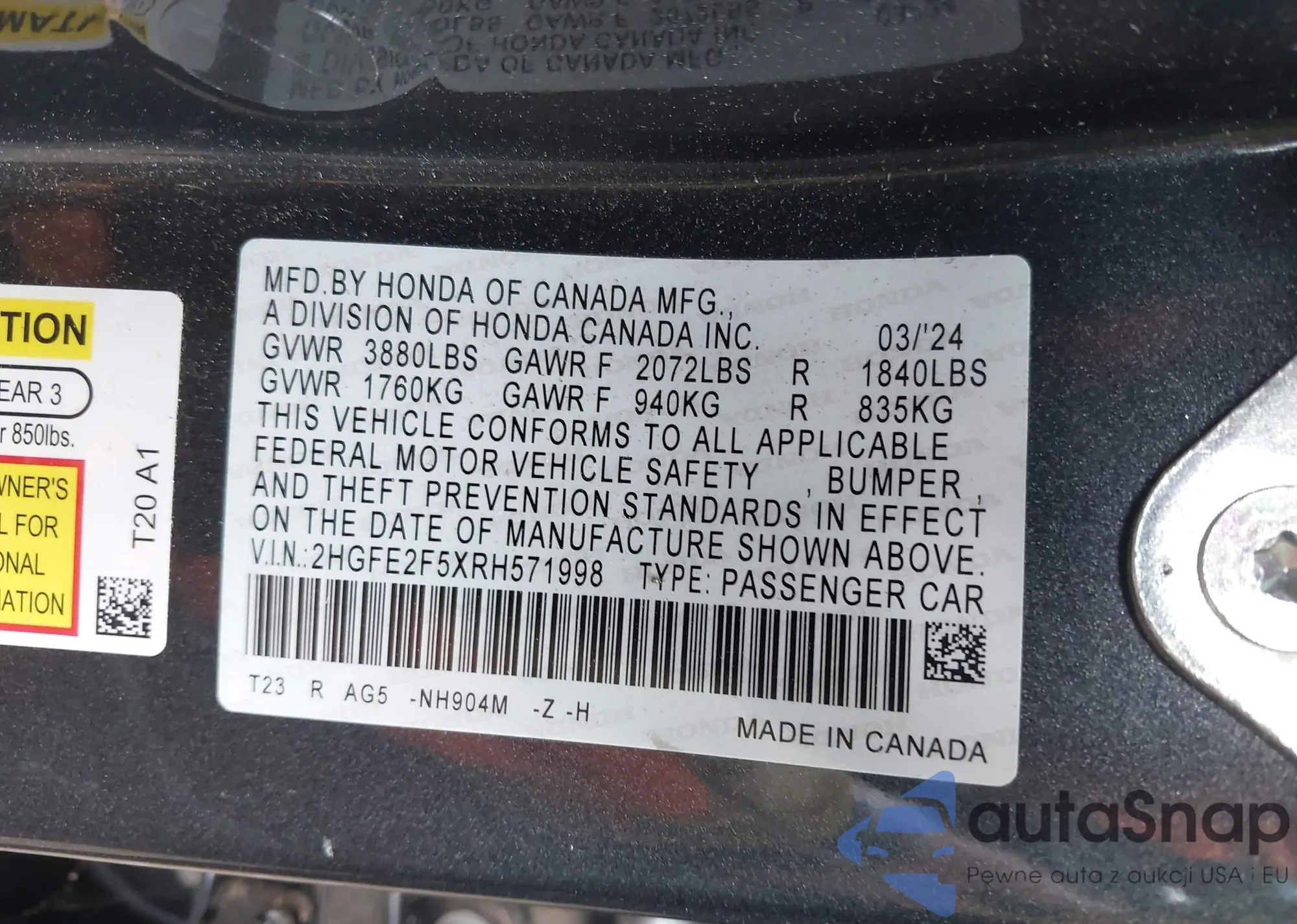 • VIN 2HGFE2F5XRH571998