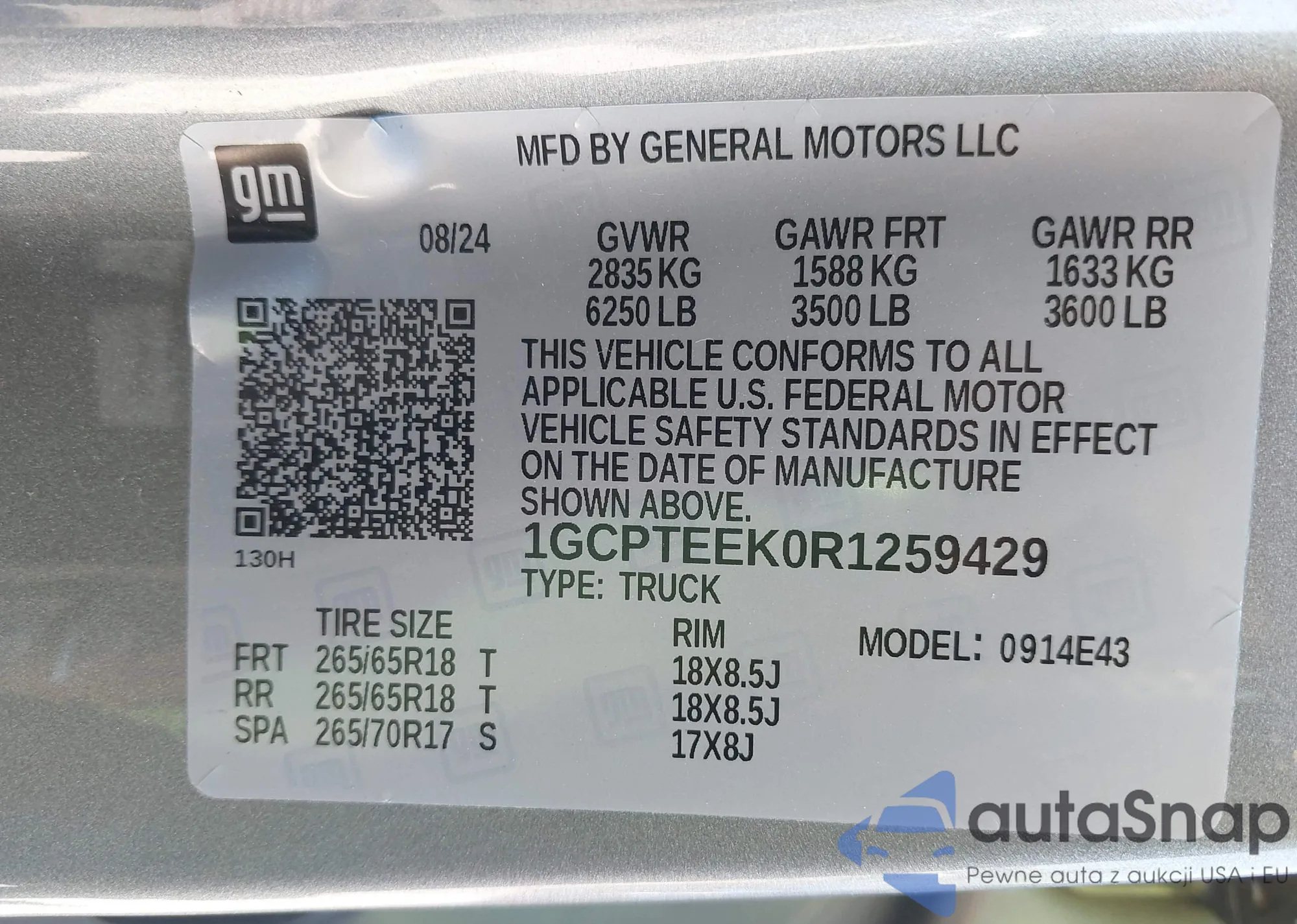 LOT: 43105994 VIN: 1GCPTEEK0R1259429