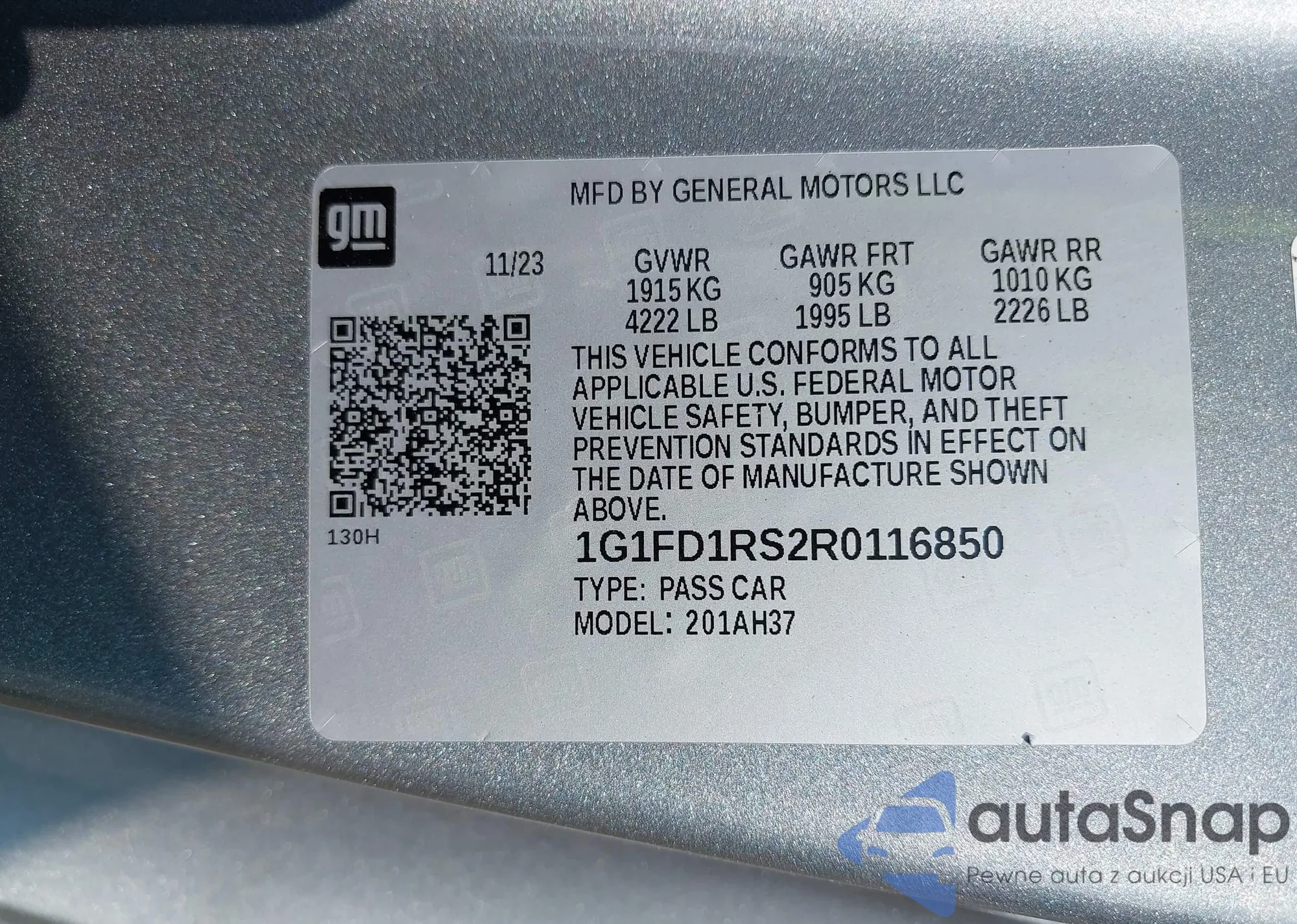 LOT: 42973119 VIN: 1G1ZD5ST1PF118543