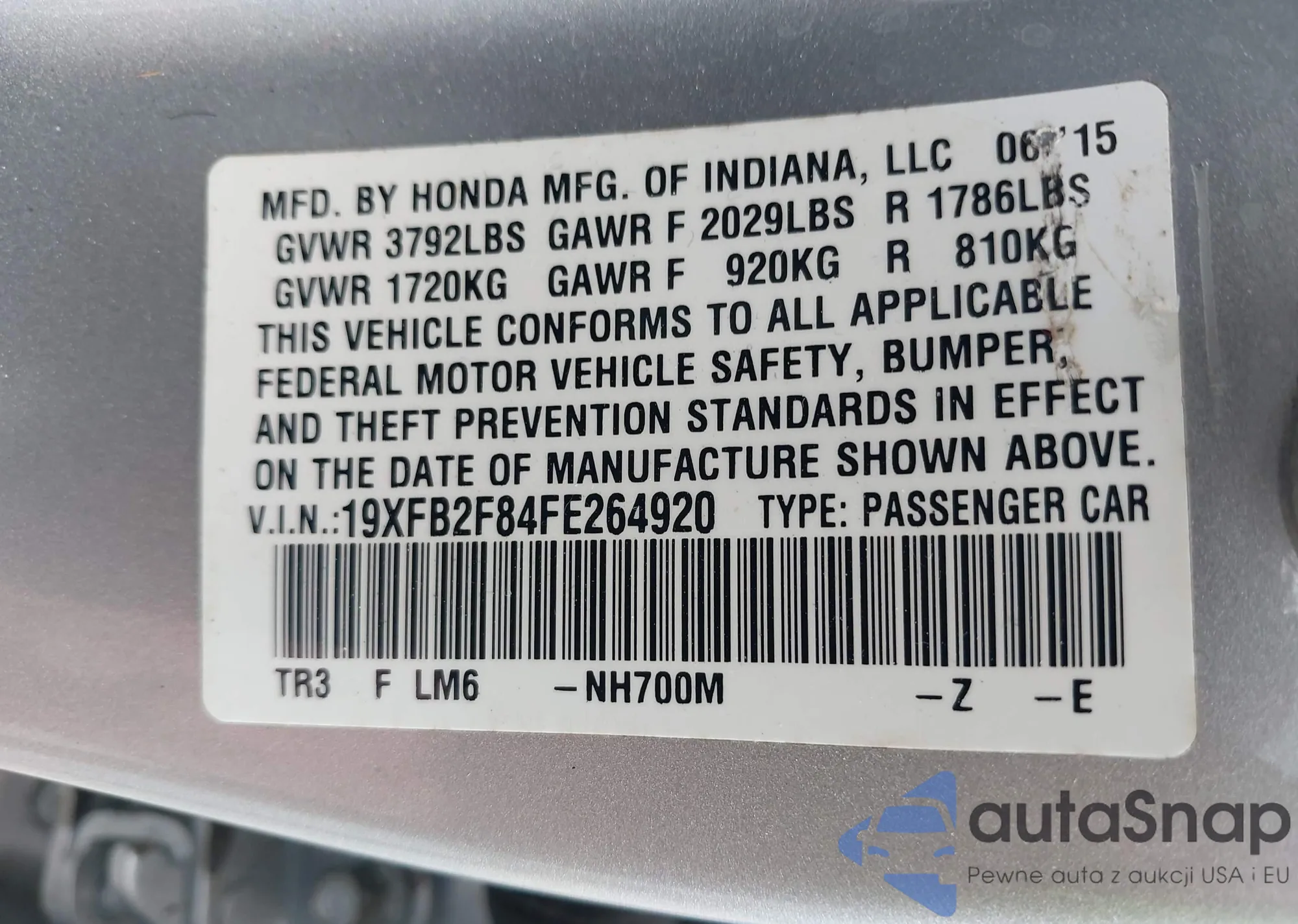 LOT: 43179876 VIN: 19XFC2F58GE081685