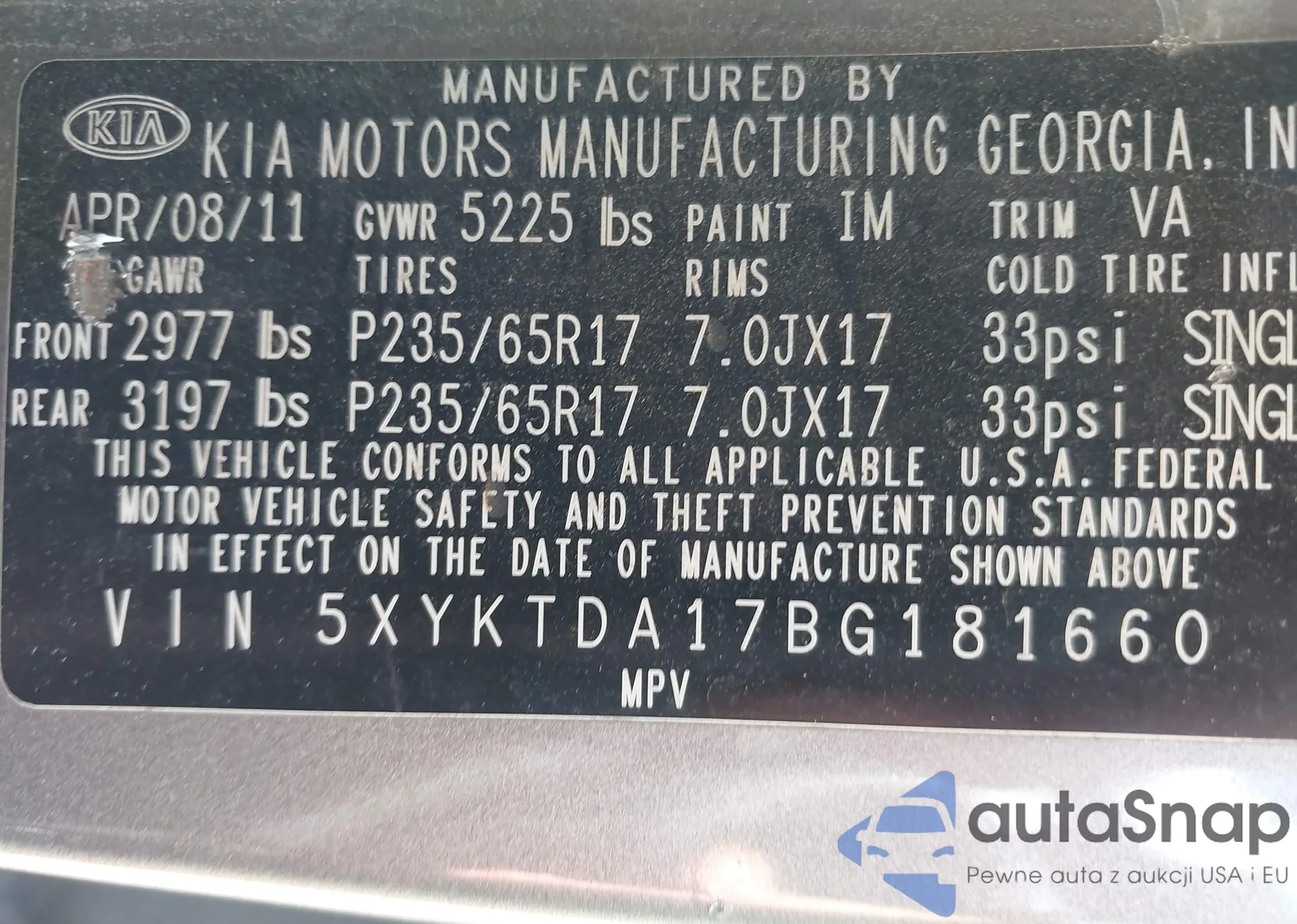 • VIN 5XYKTDA17BG181660