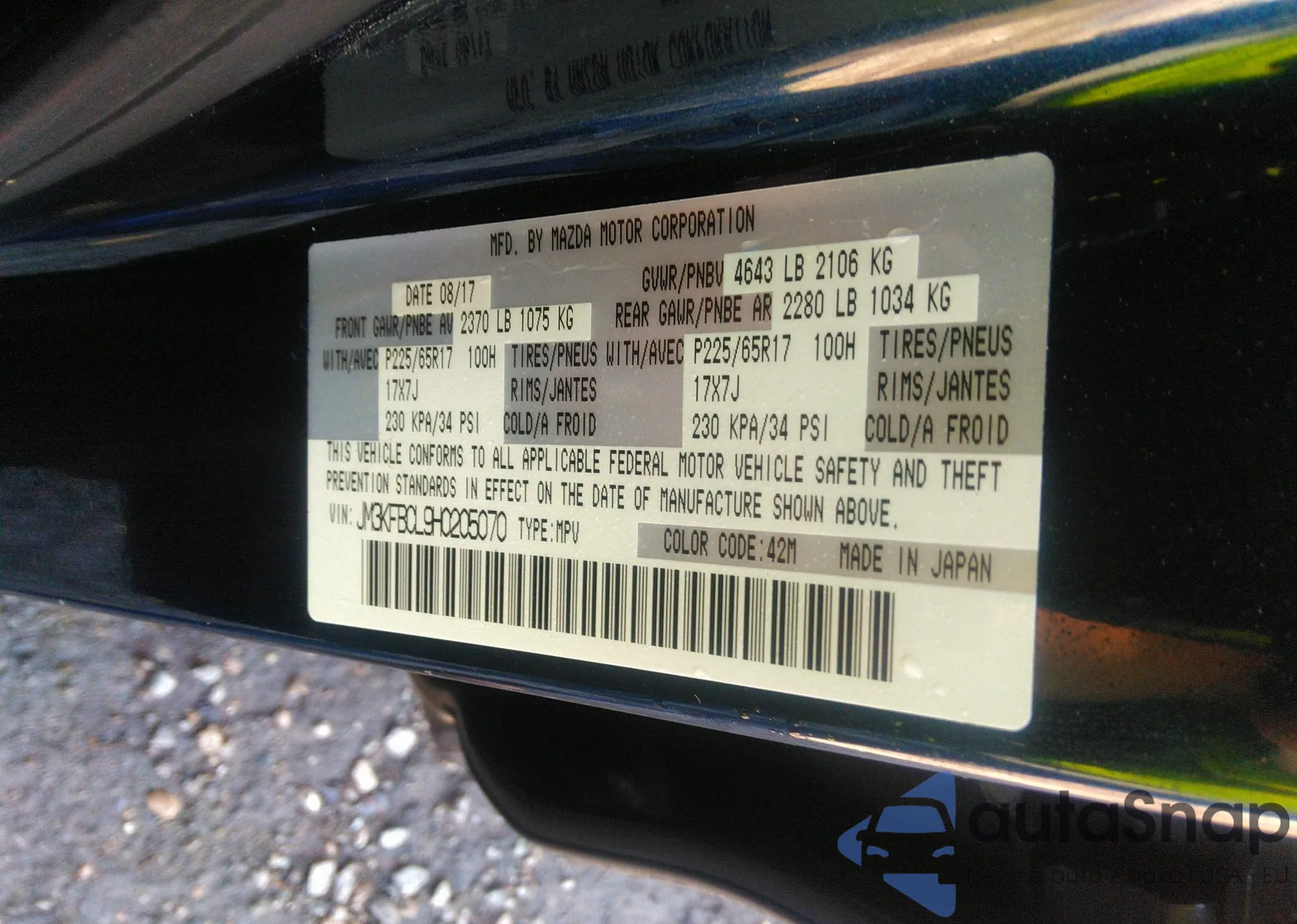 LOT: 43147292 VIN: JM3KFBCL9H0205070