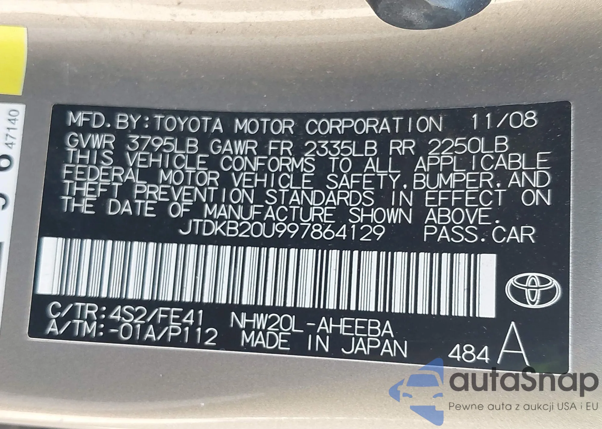 LOT: 43135280 VIN: KM8K3CA58JU066538