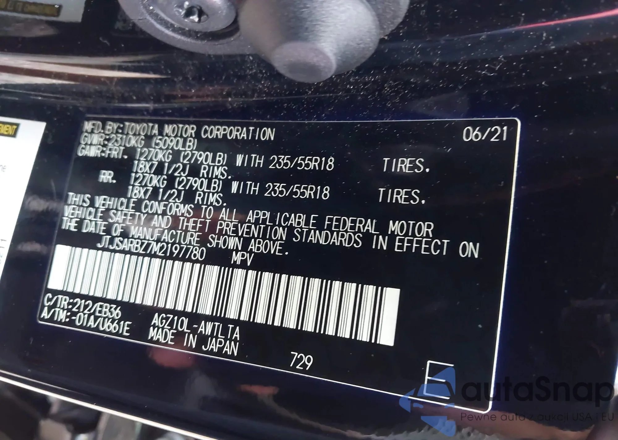 LOT: 42918777 VIN: 4T1G11AK2MU491134