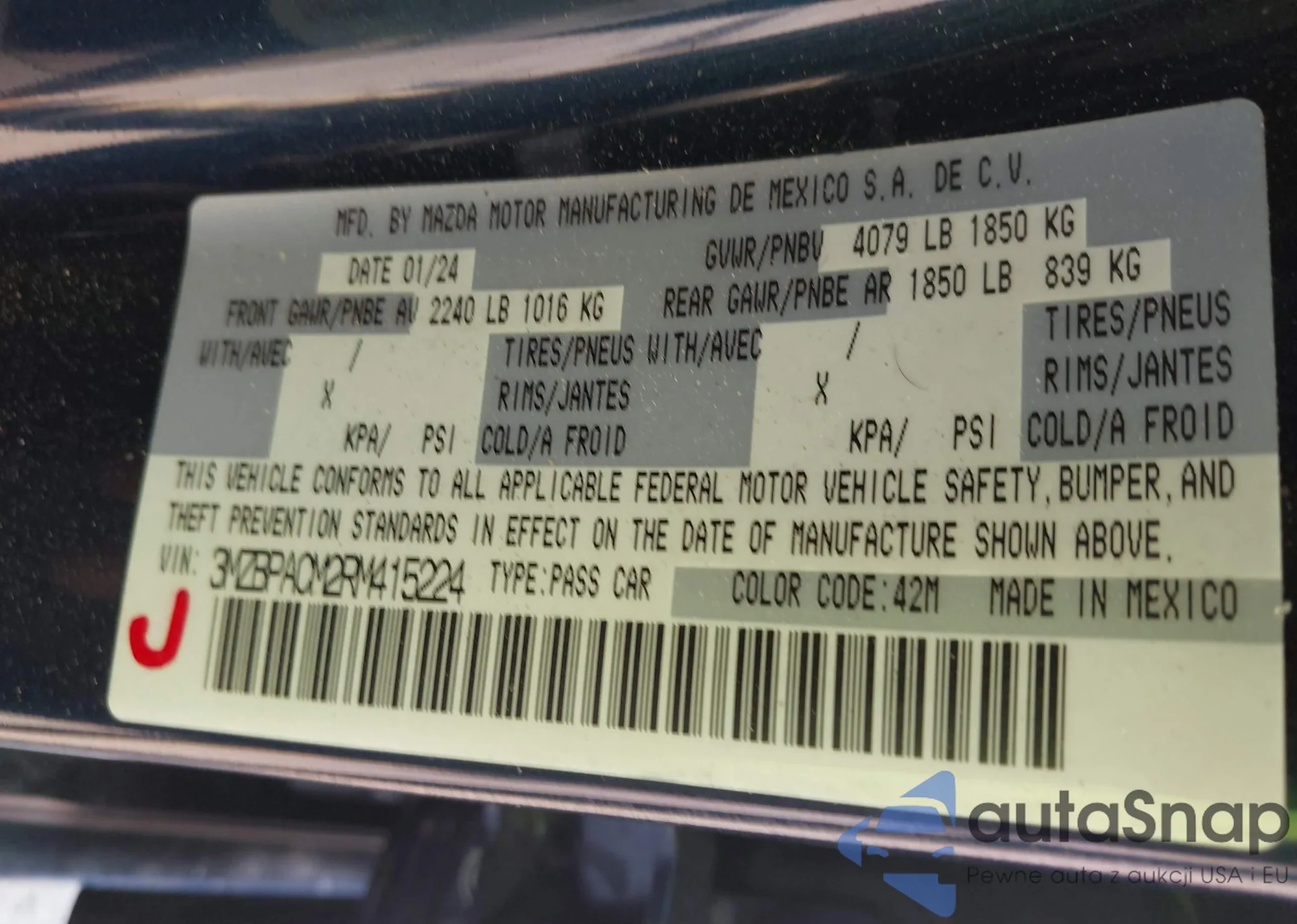 LOT: 43105862 VIN: 3MZBPACM2RM415224