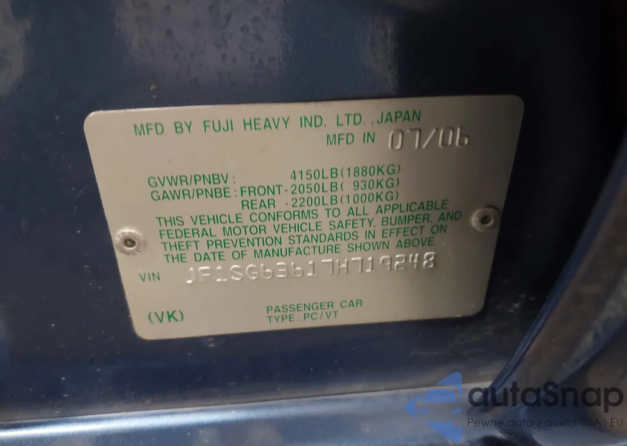 • VIN JF1SG63617H719248