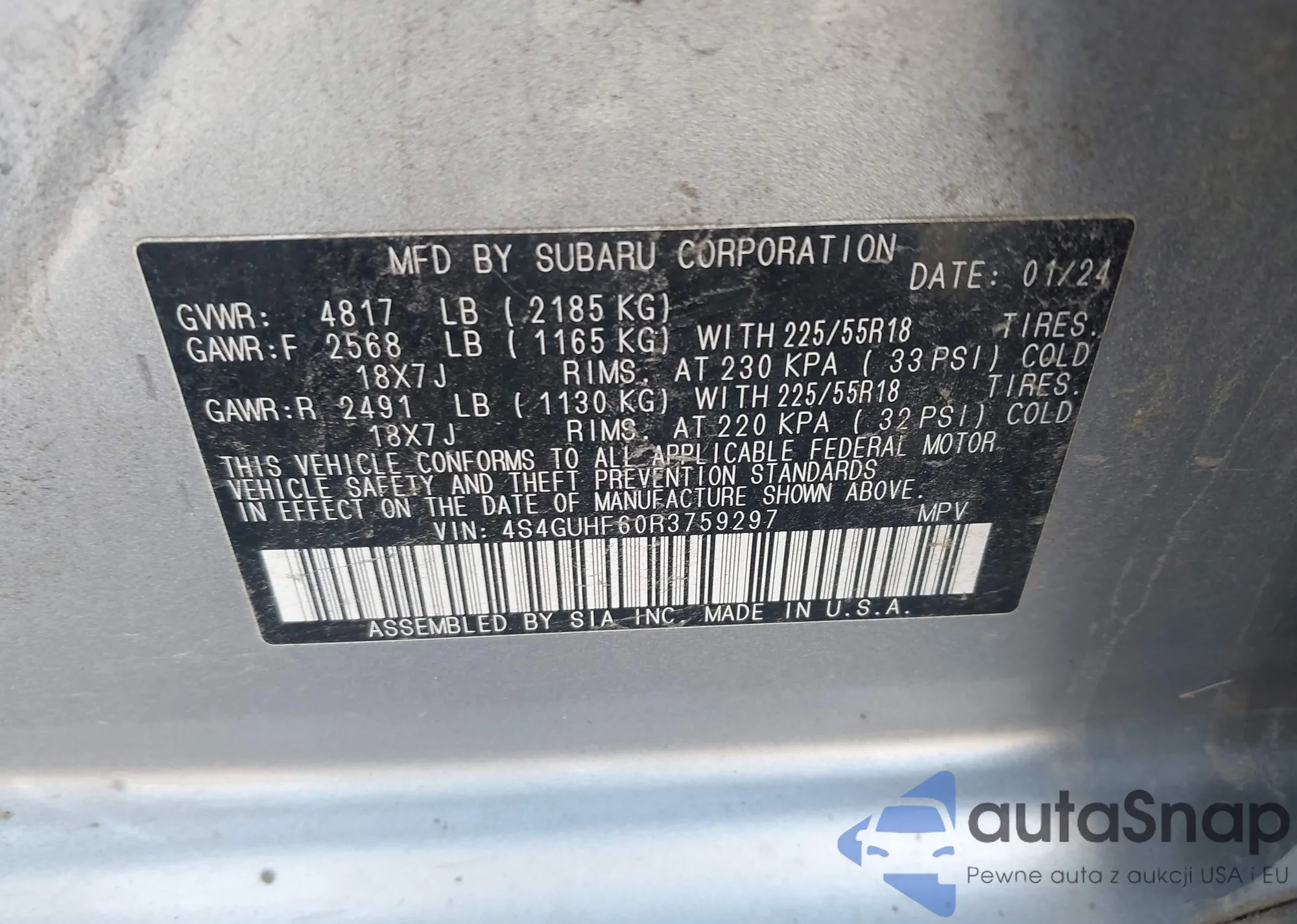 • VIN 4S4GUHF60R3759297