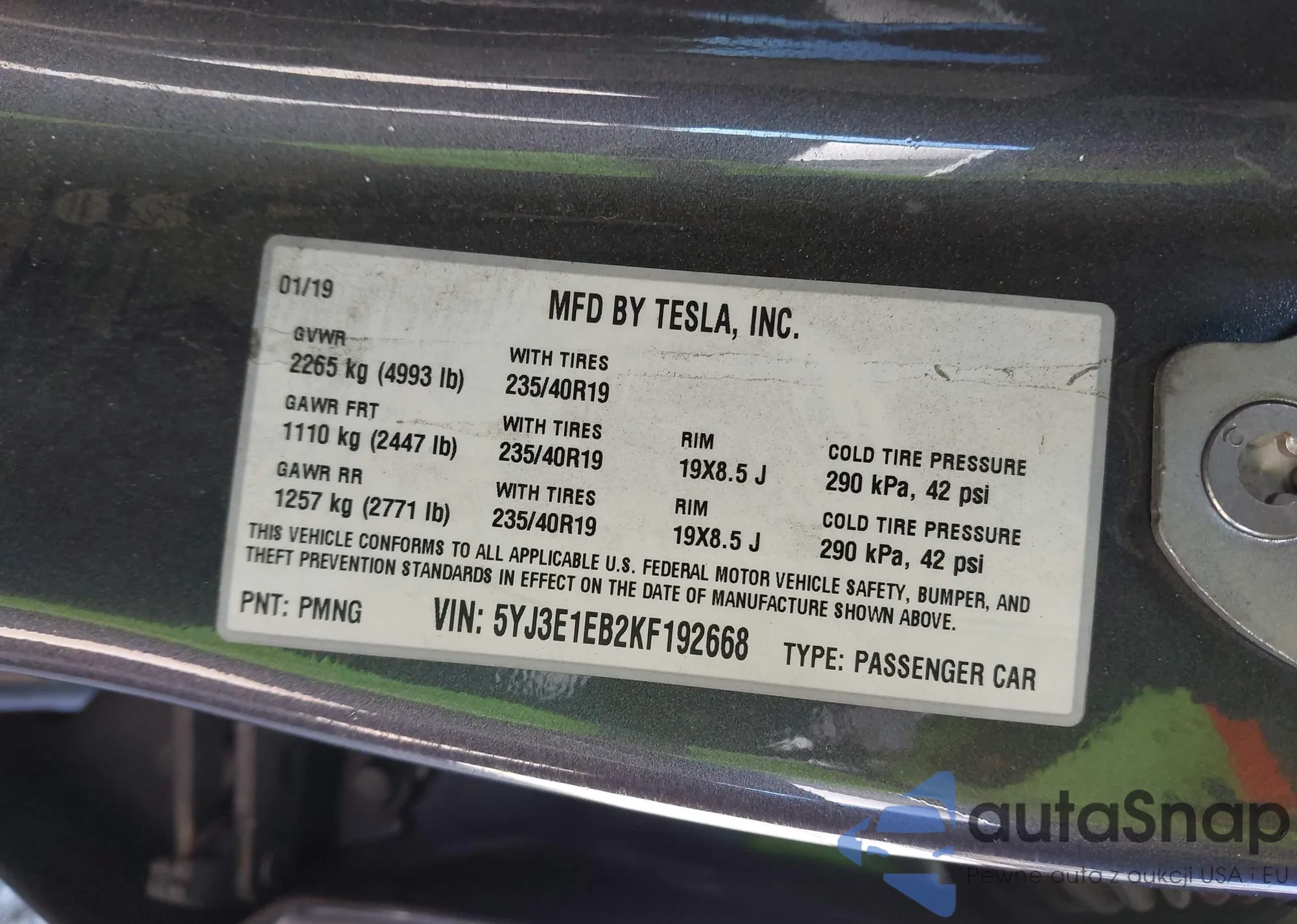 • VIN 5YJ3E1EB2KF192668