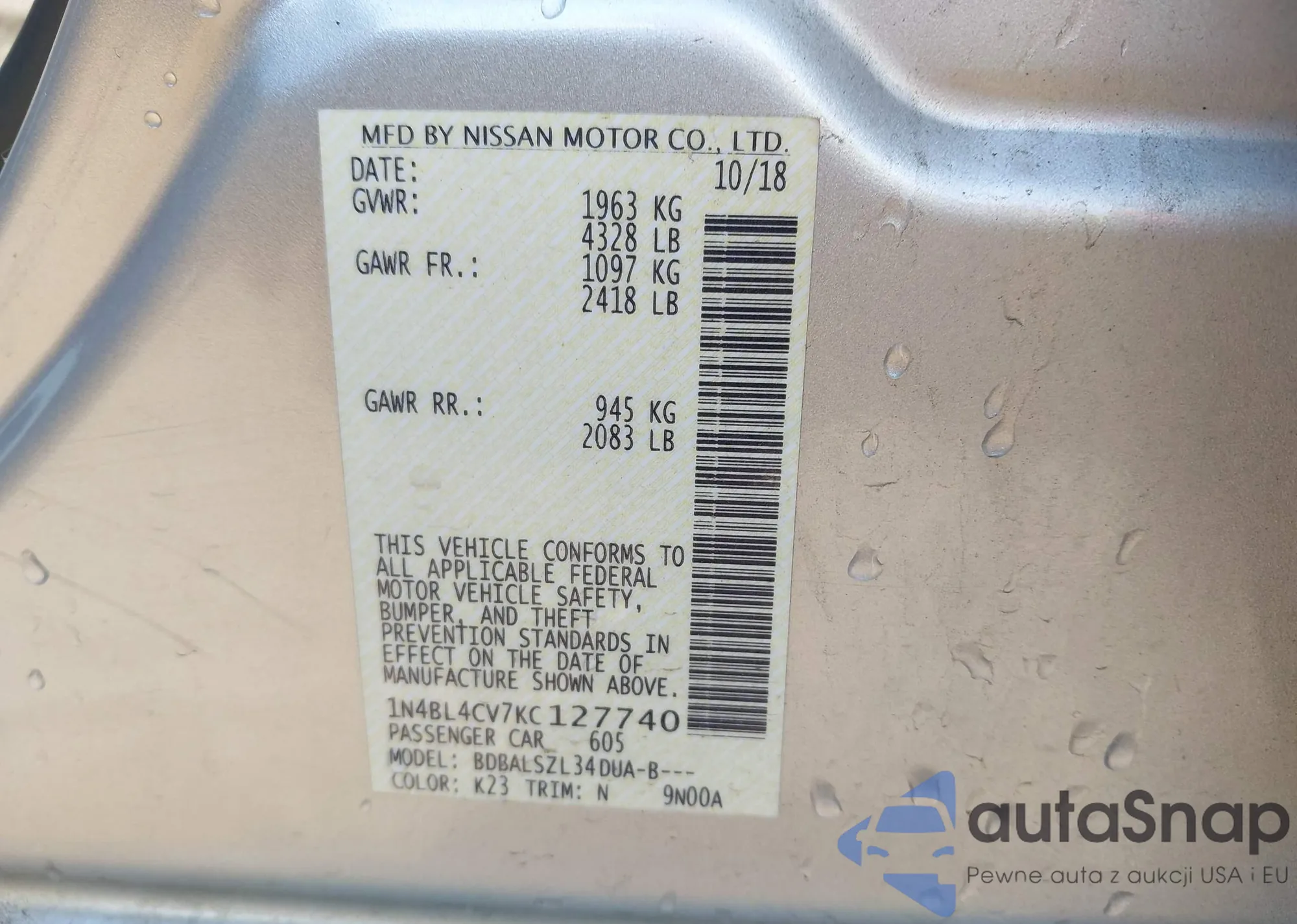 LOT: 43142541 VIN: KNMAT2MVXJP601681