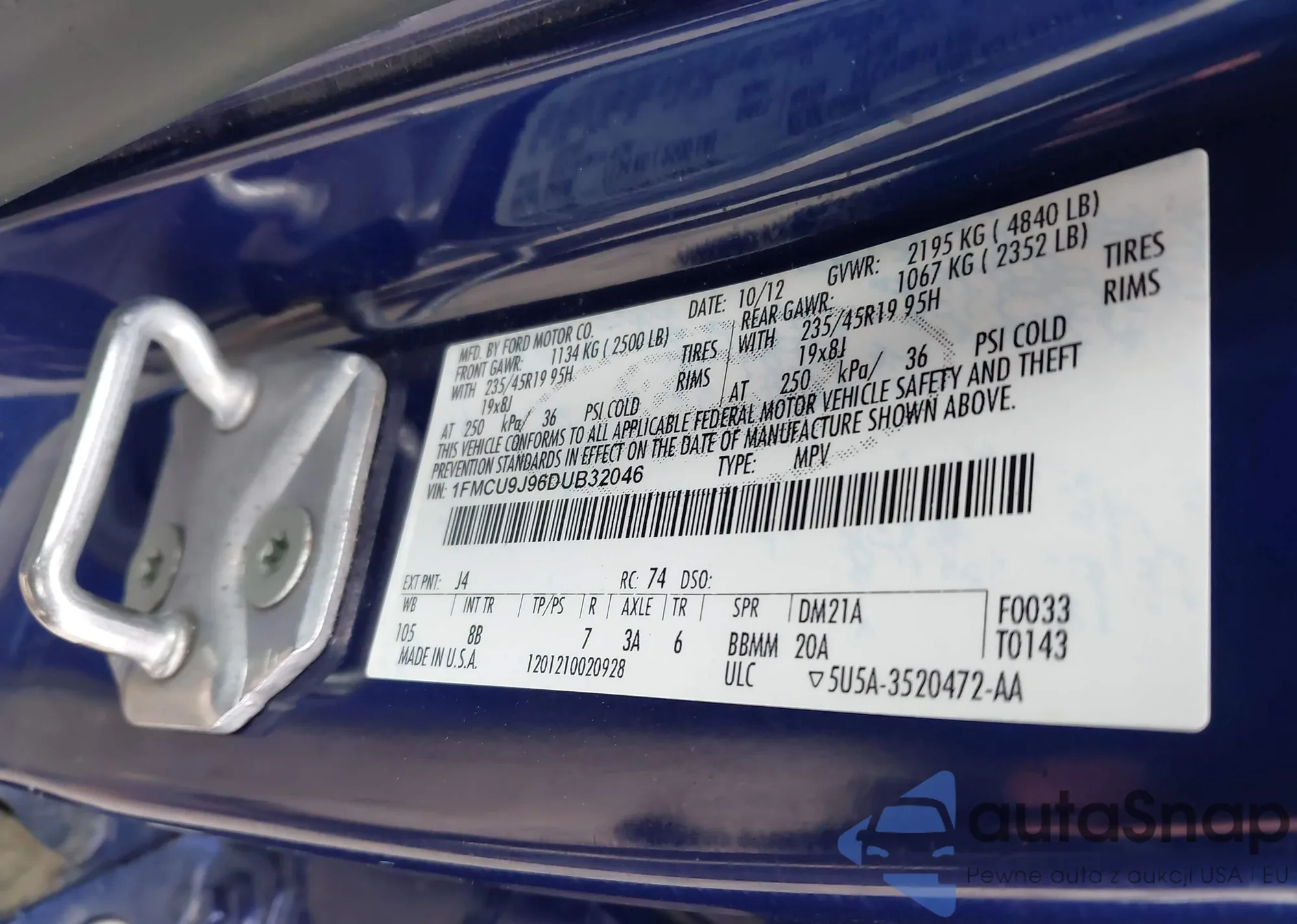 • VIN 1FMCU9J96DUB32046