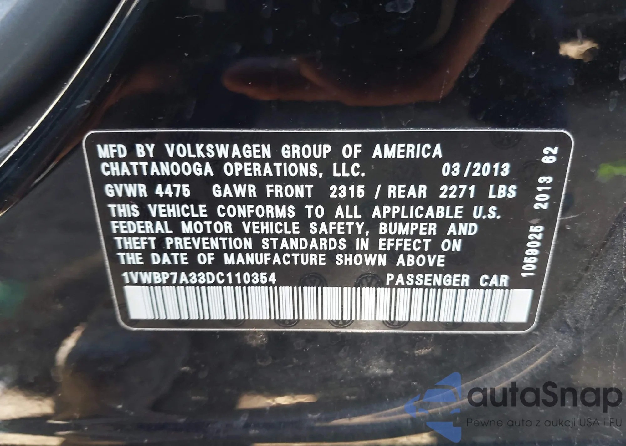 • VIN 1VWBP7A33DC110354