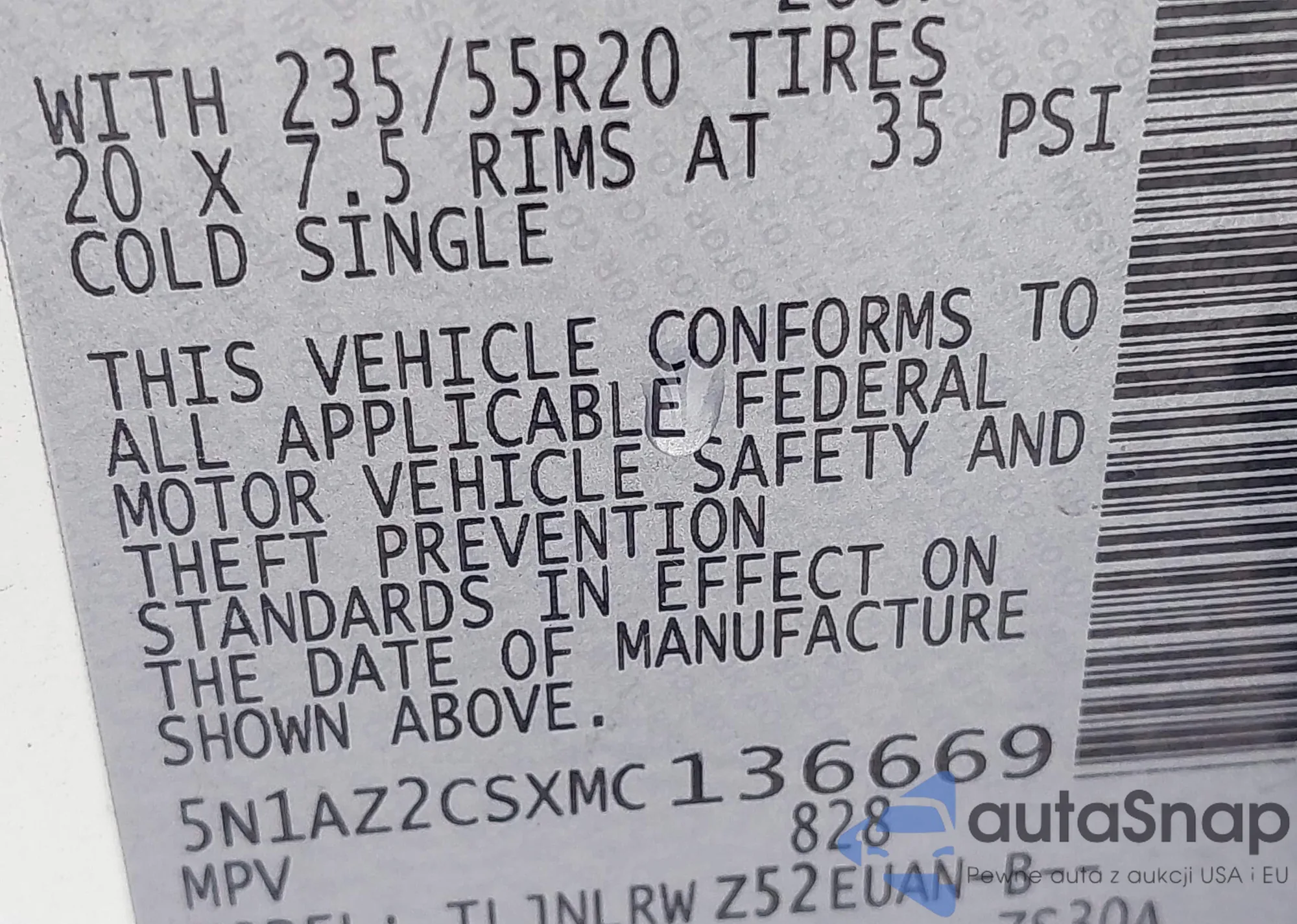 • VIN 5N1AZ2CSXMC136669
