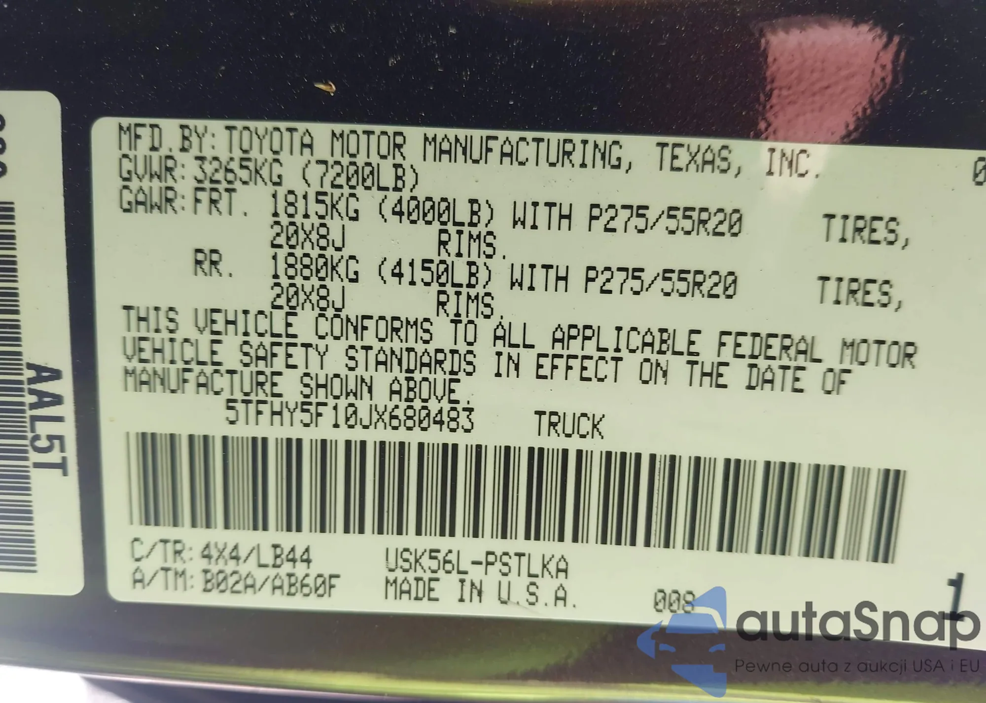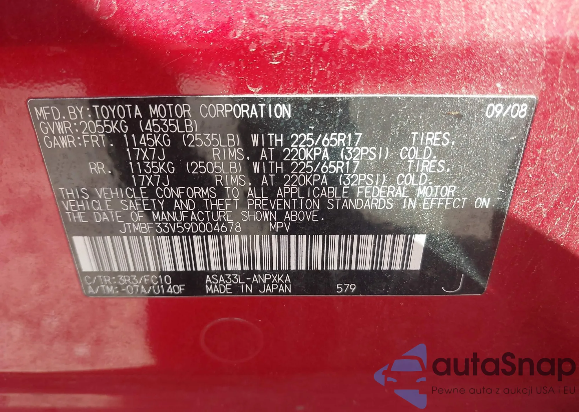 LOT: 43326140 VIN: JTMBF33V59D004678