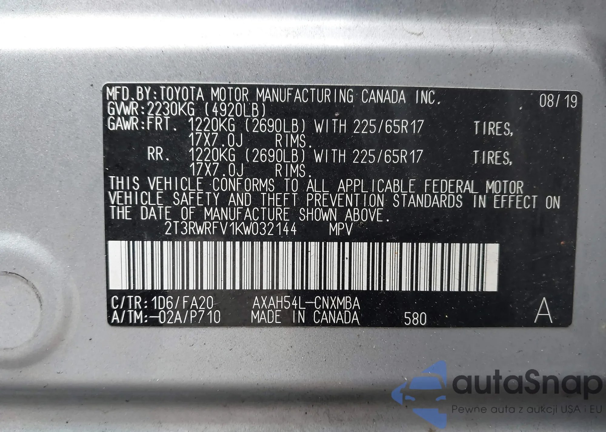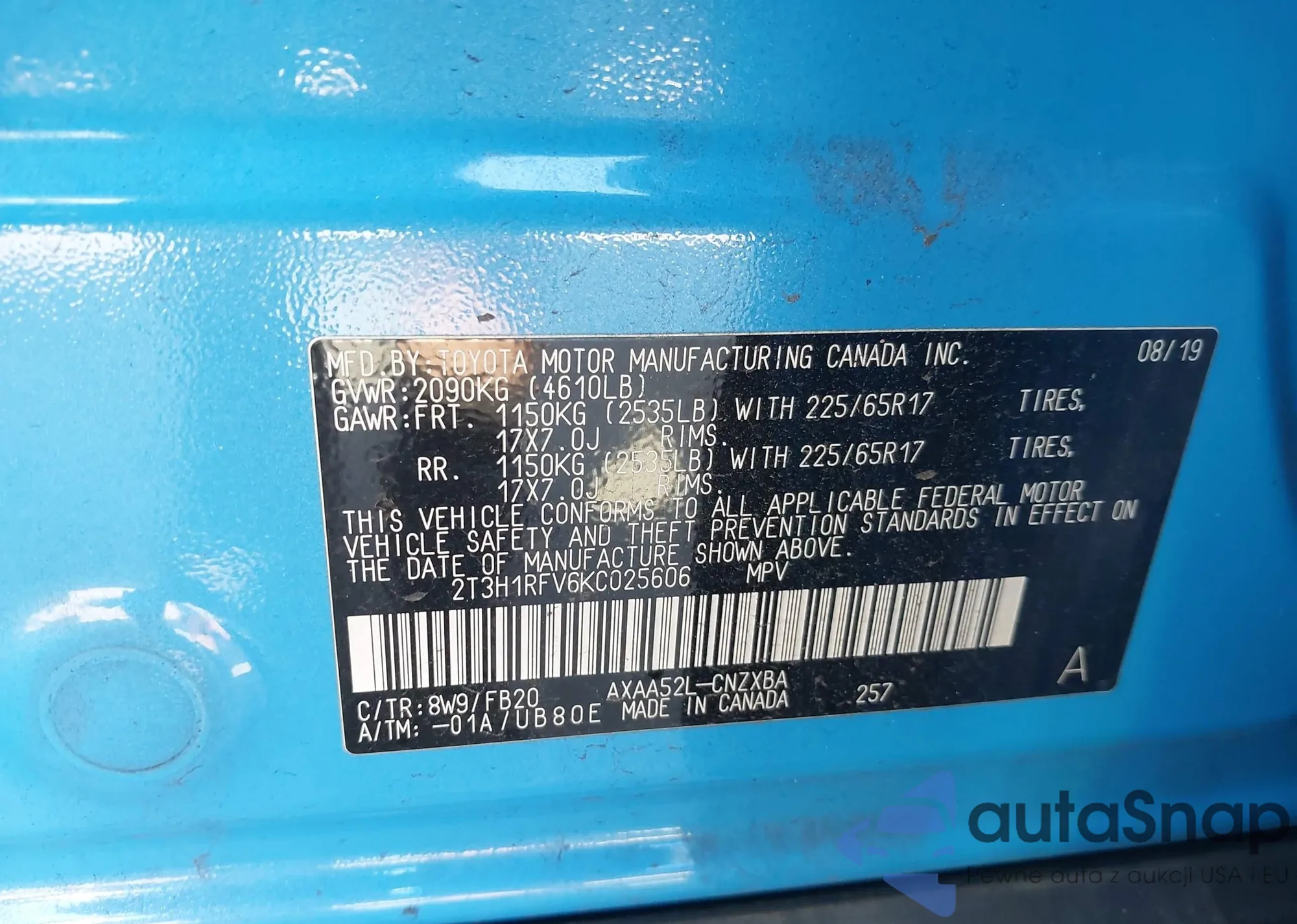 LOT: 43182634 VIN: 2T3H1RFV6KC025606
