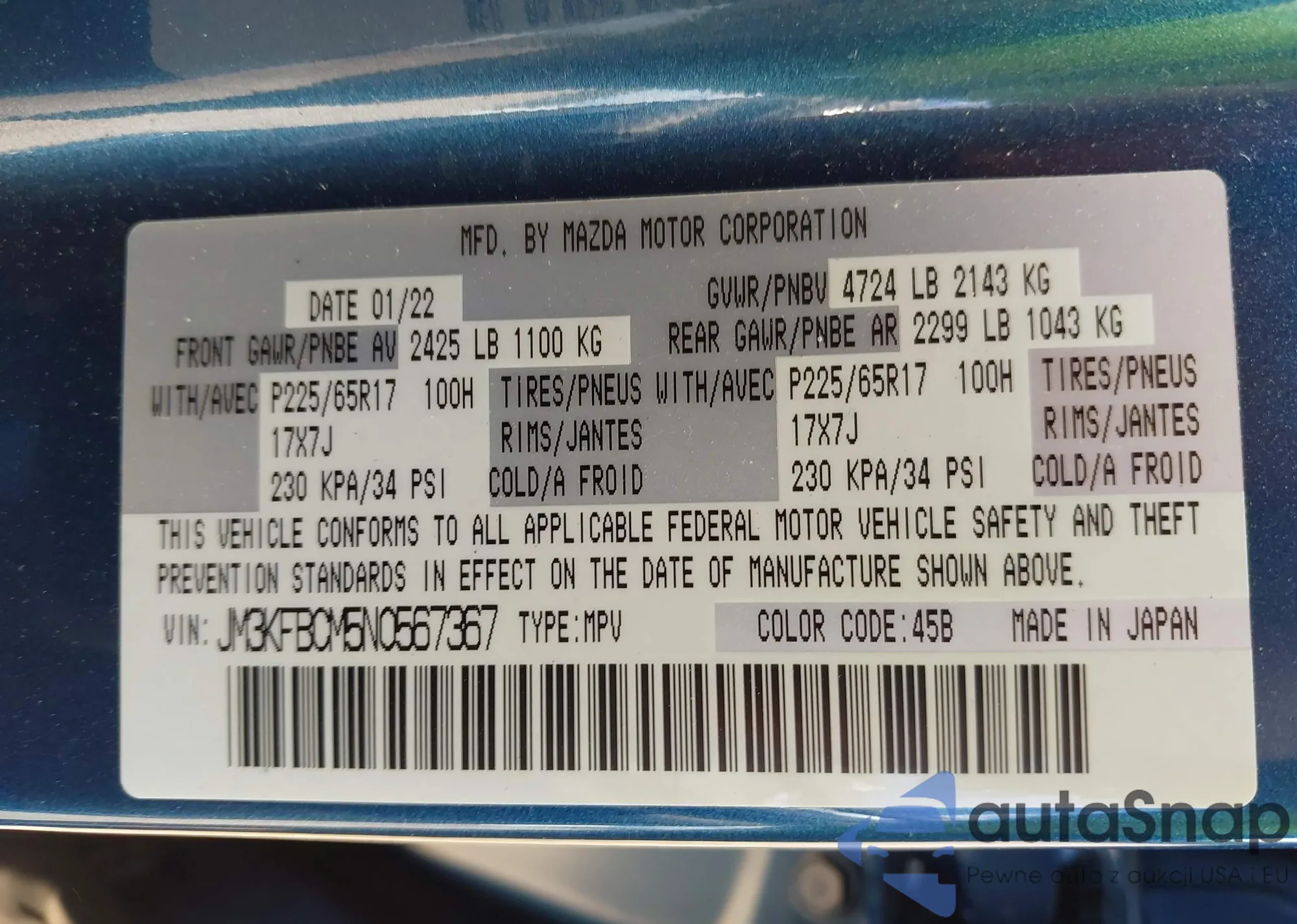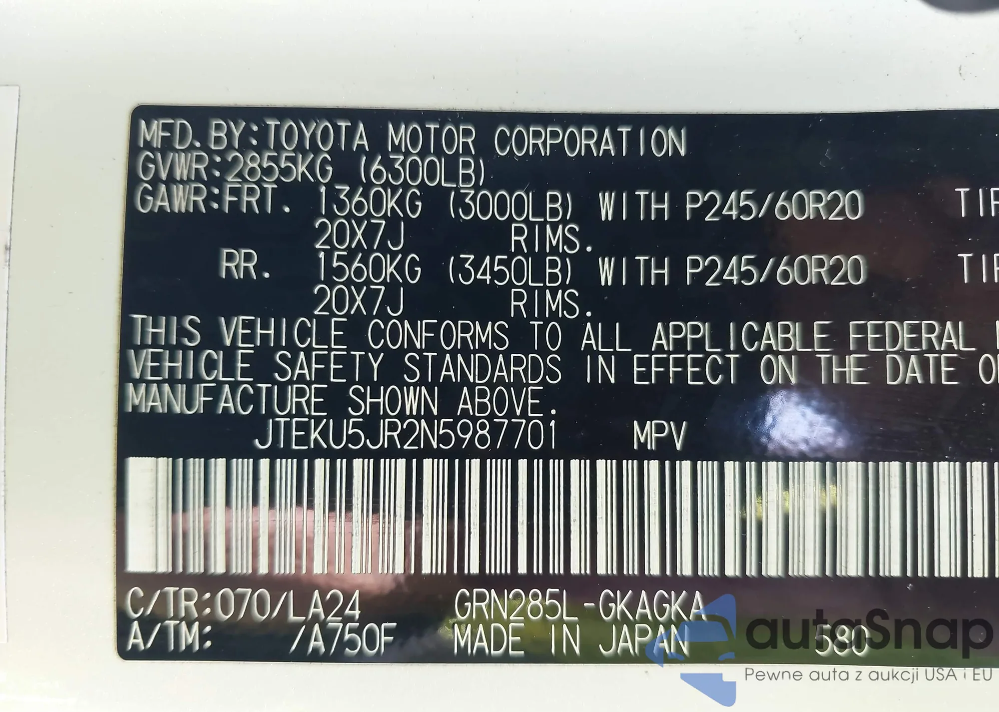 LOT: 43209144 VIN: JTEKU5JR2N5987701