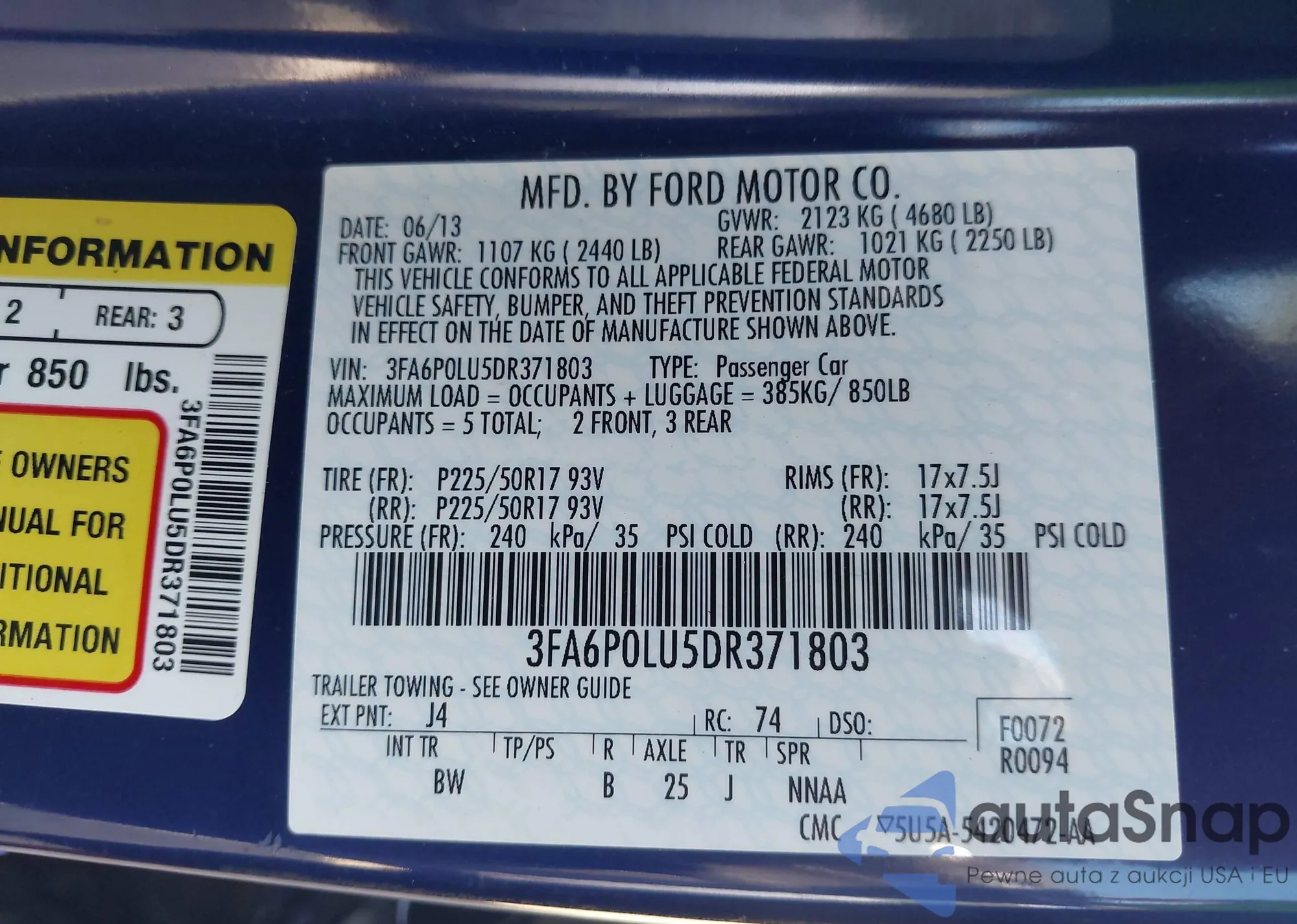 • VIN 3FA6P0LU5DR371803