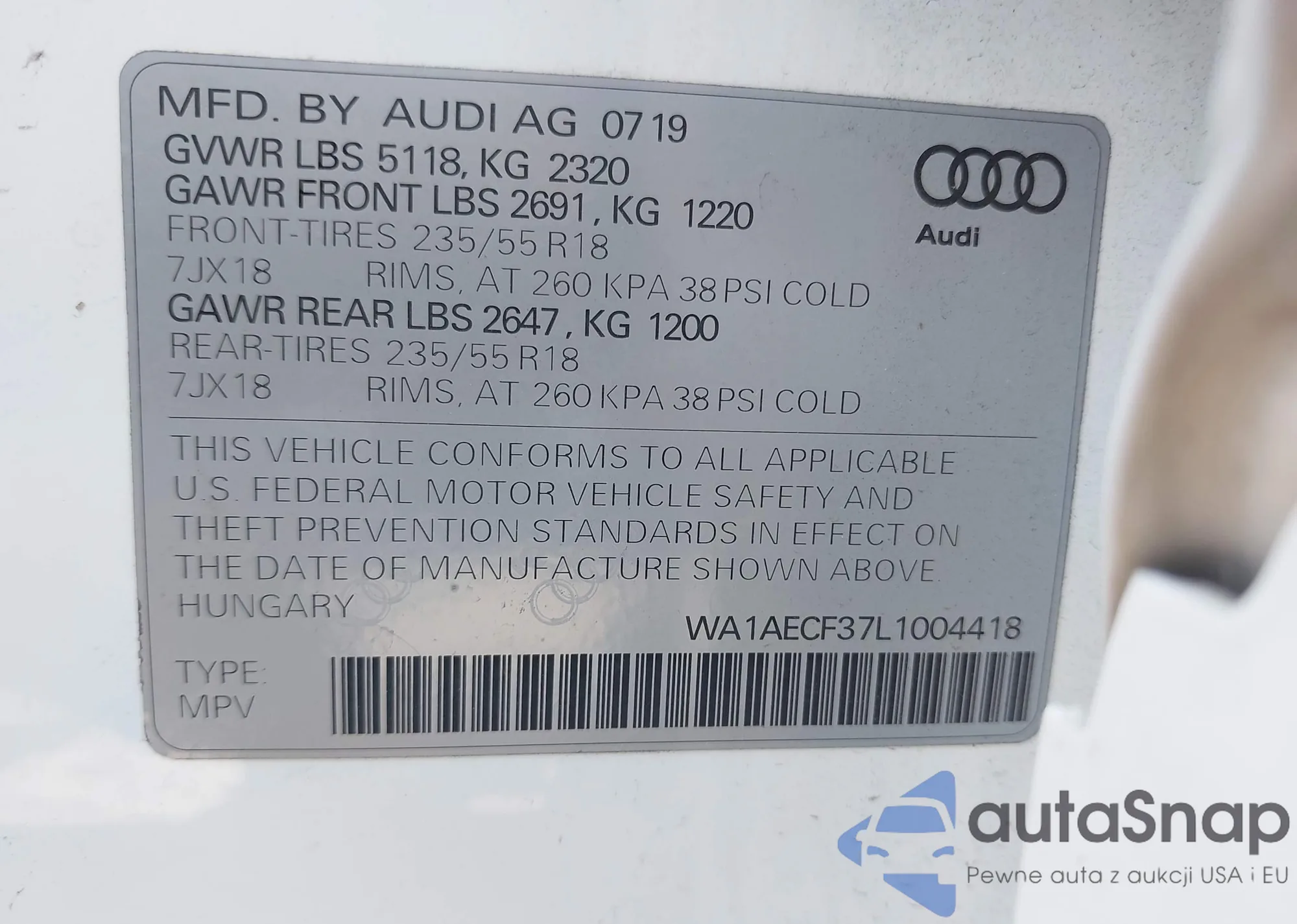 • VIN WA1AECF37L1004418