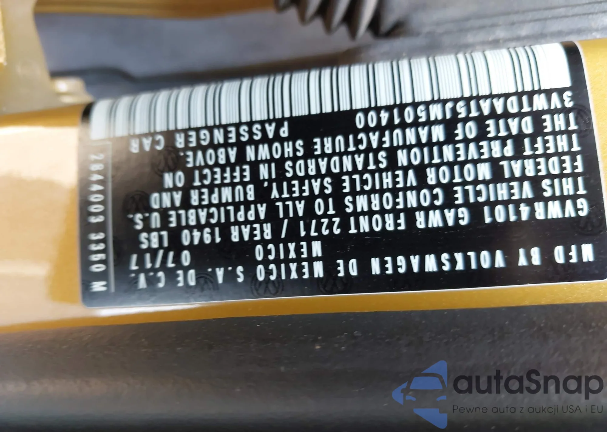 • VIN 3VWTDAAT5JM501400