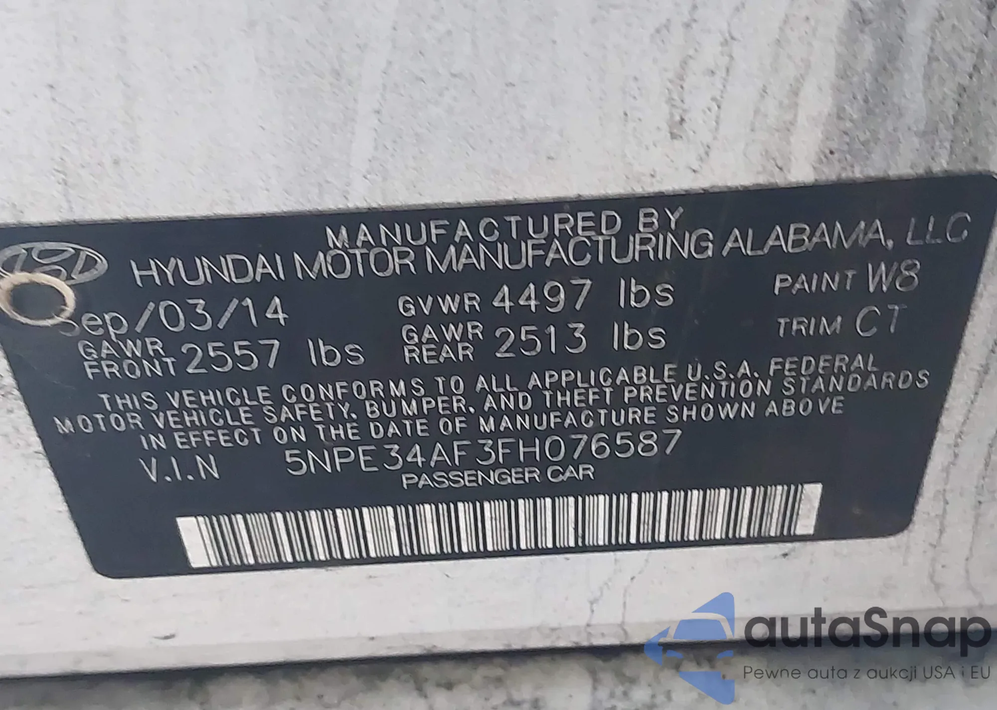 • VIN 5NPE34AF3FH076587