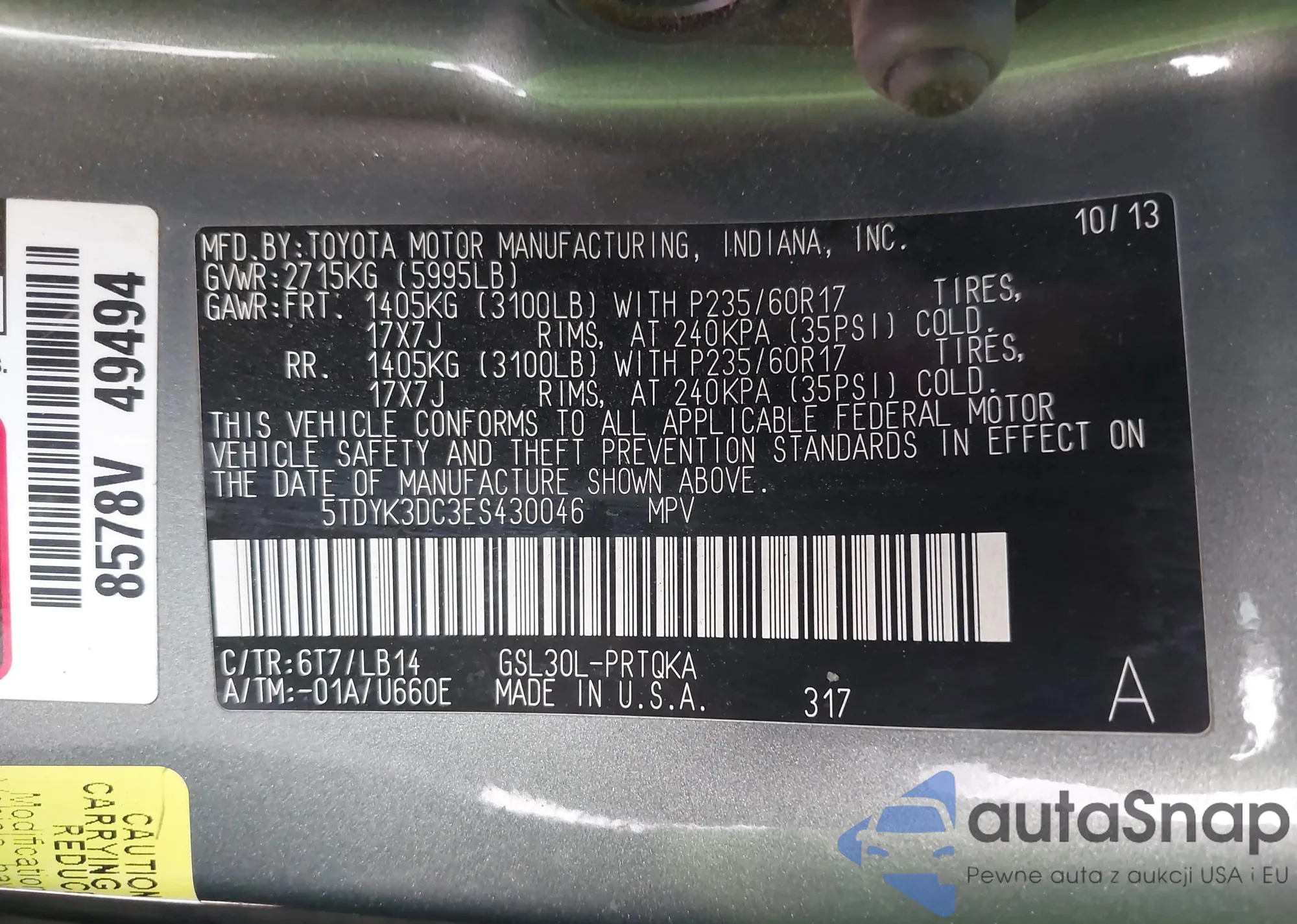 • VIN 5TDYK3DC3ES430046