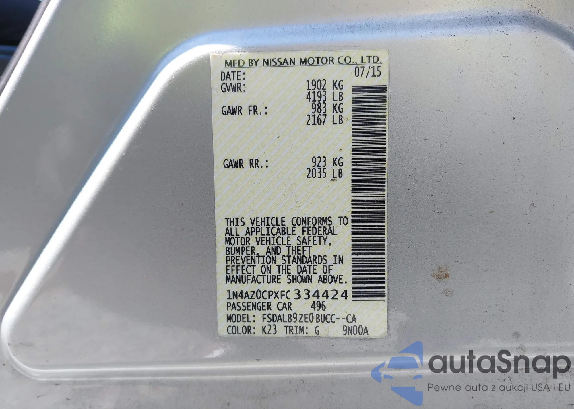 • VIN 1N4AZ0CPXFC334424