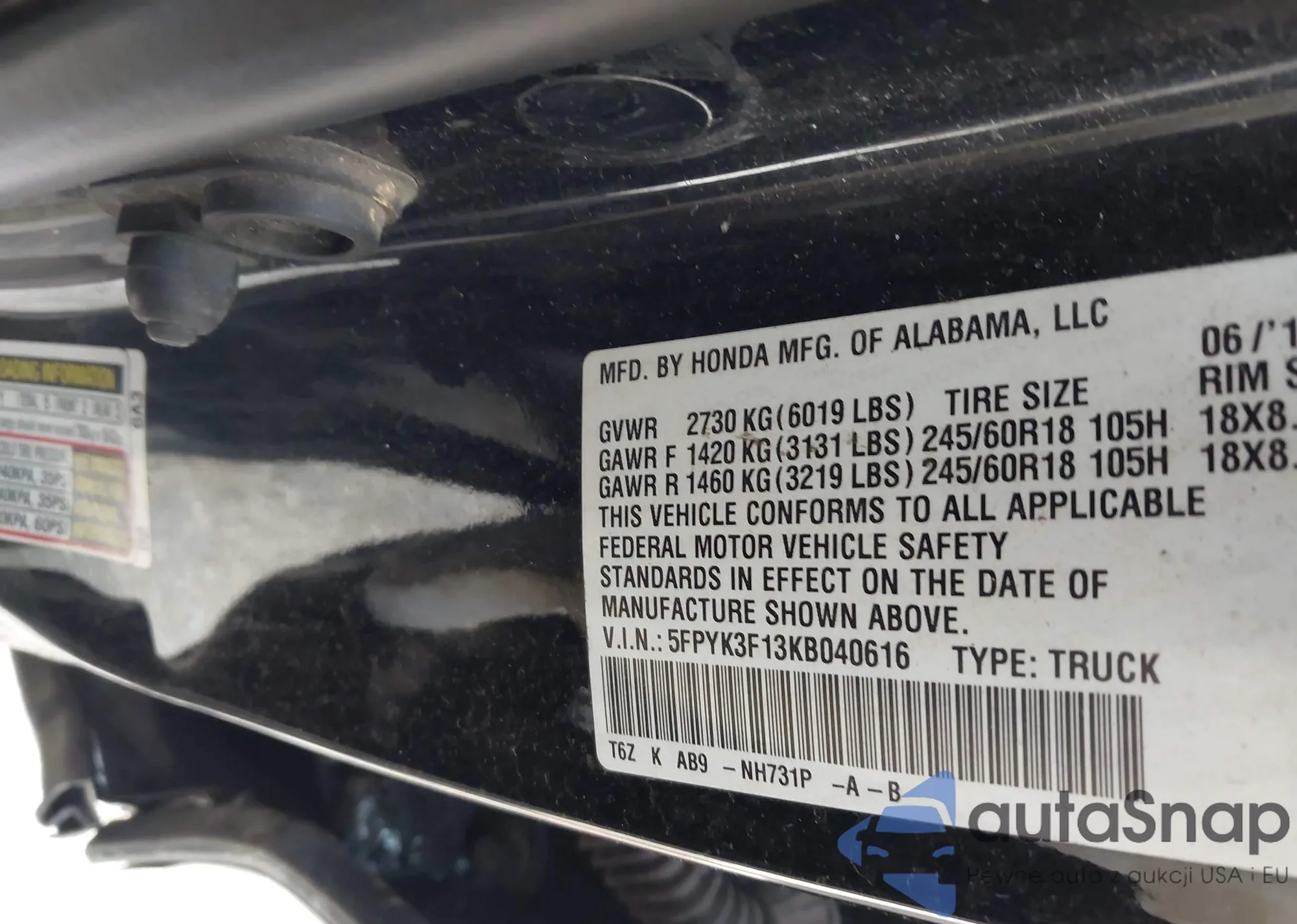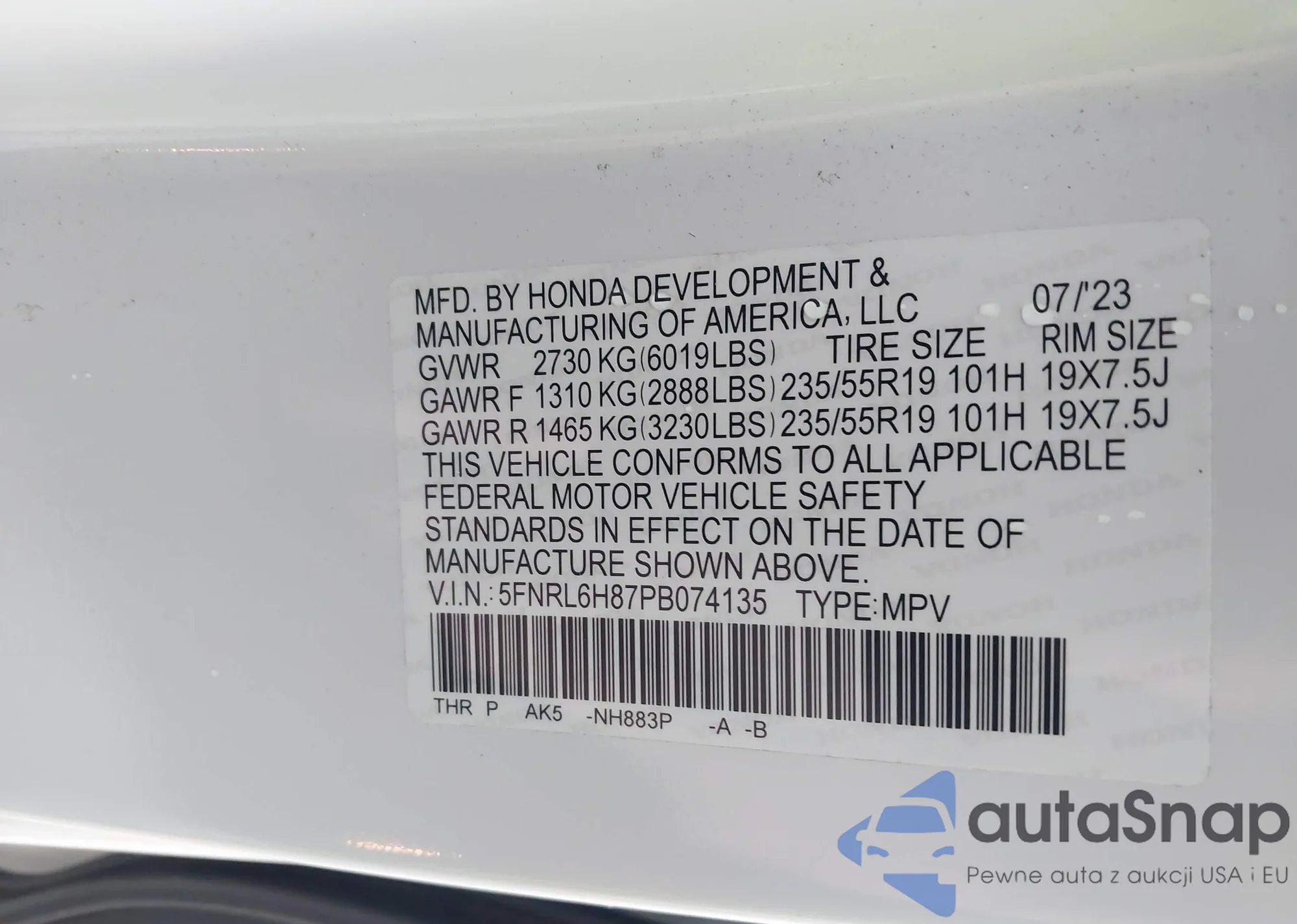 • VIN 5FNRL6H87PB074135
