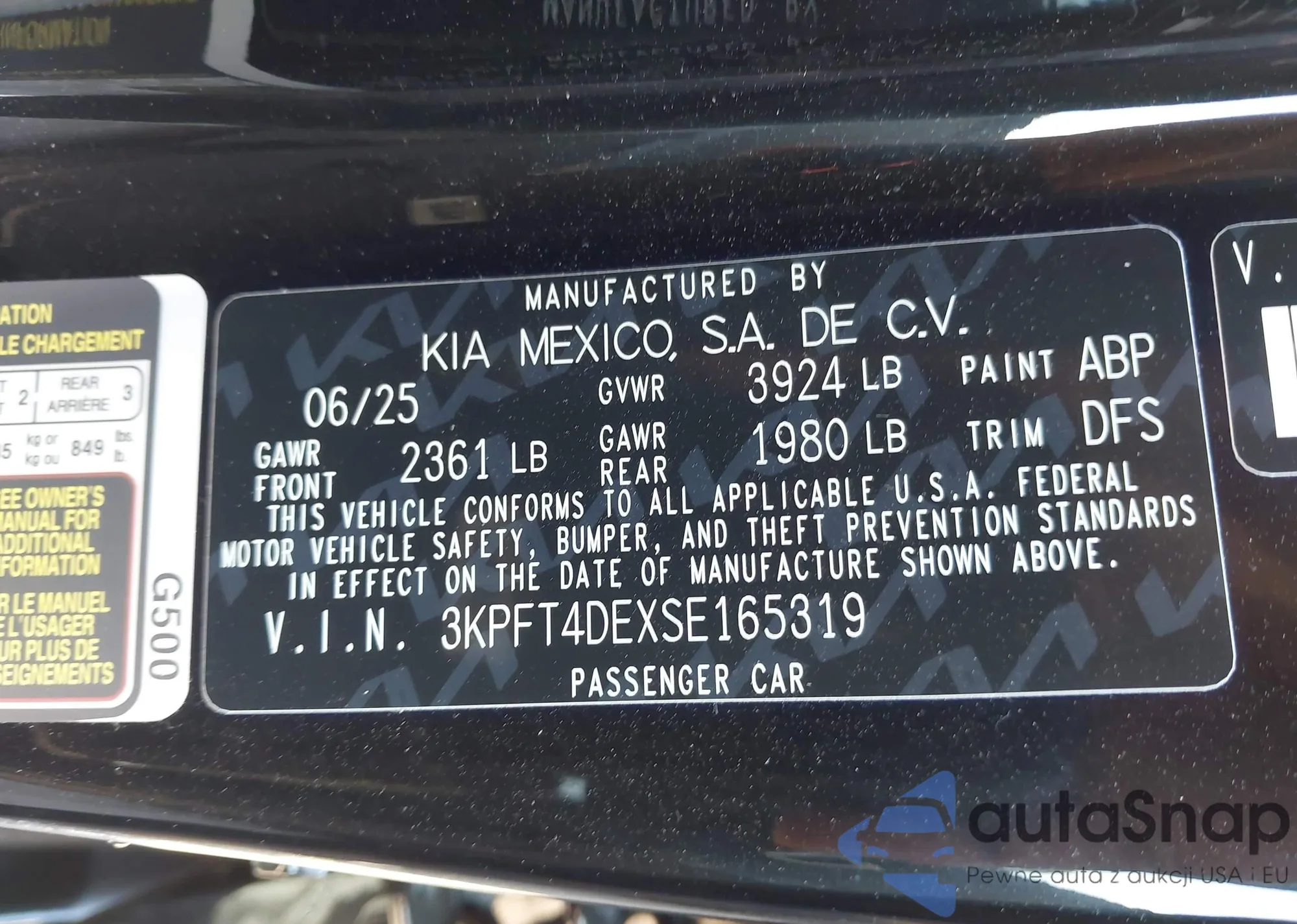 LOT: 43217344 VIN: 3KPFT4DEXSE165319
